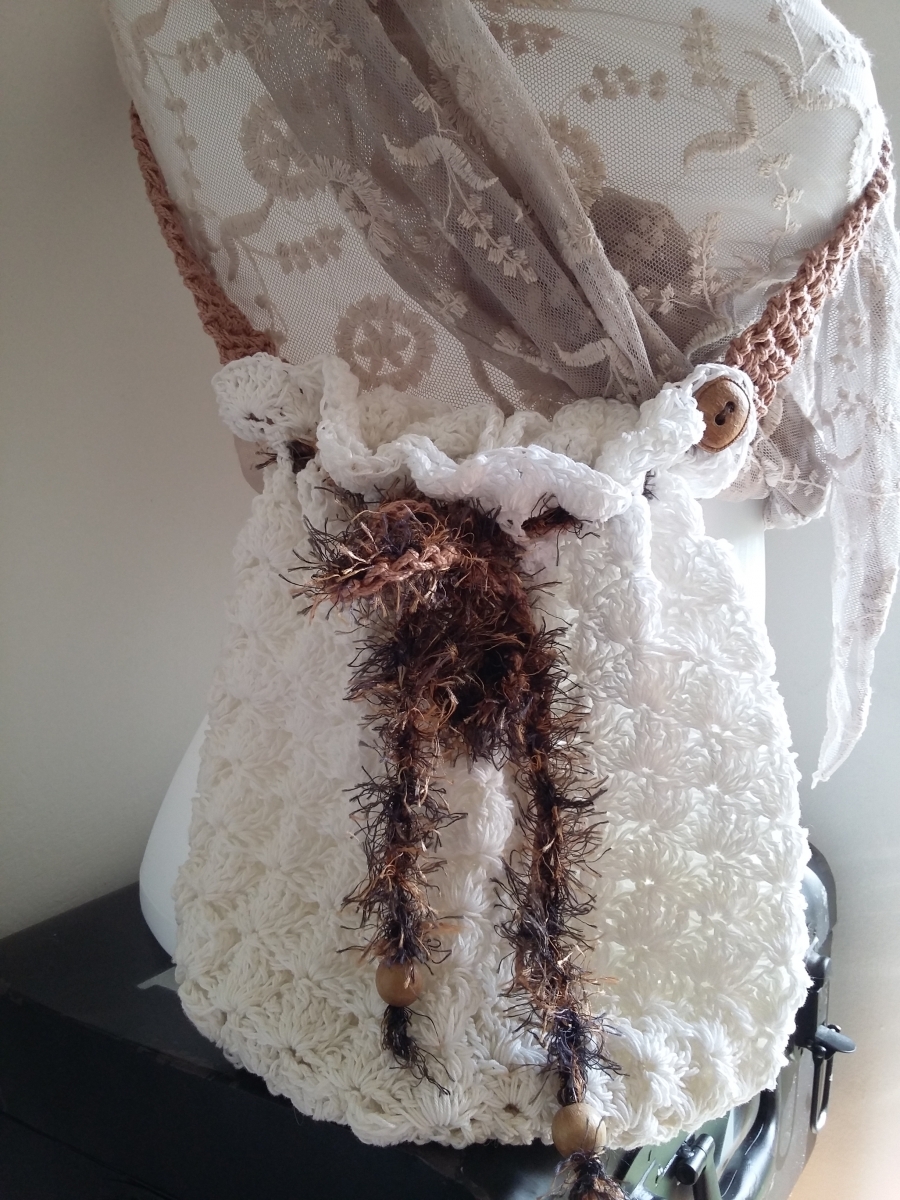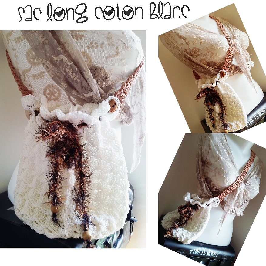 Crochet coton blanc, boutons bois.