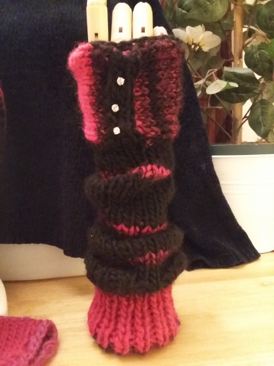 Longues mitaines noires/framboise avec col et bonnetassortis