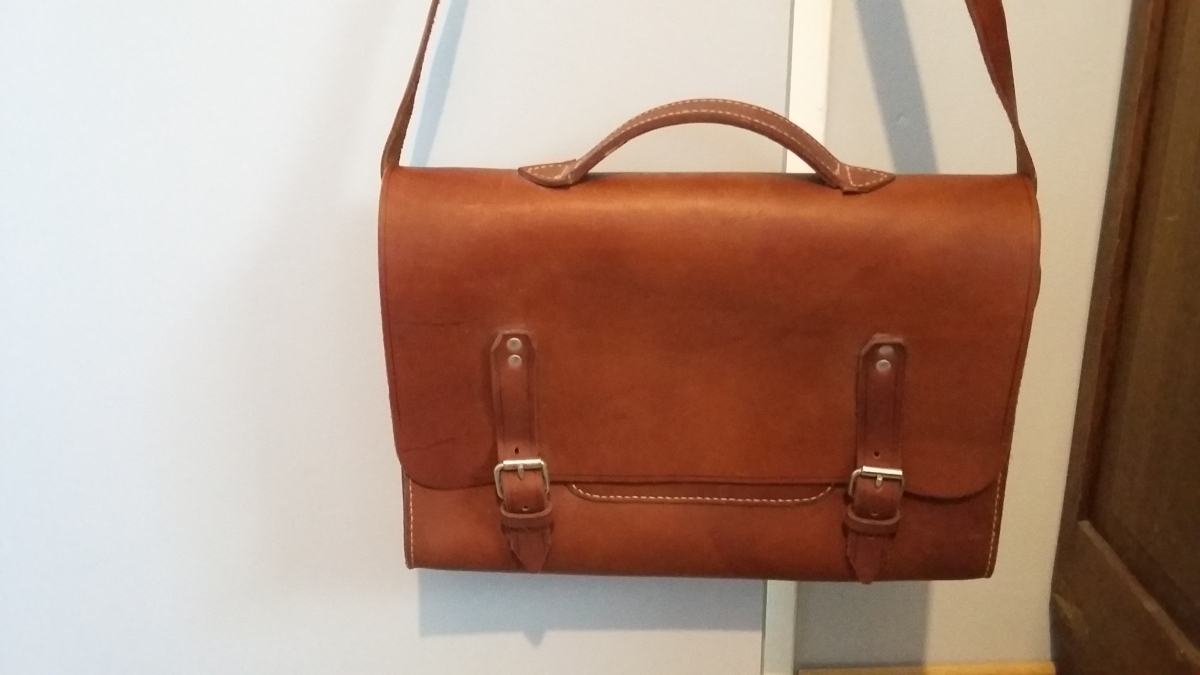 Cartable en cuir artisanal en très bon état très peu servi. Bandoulière réglable