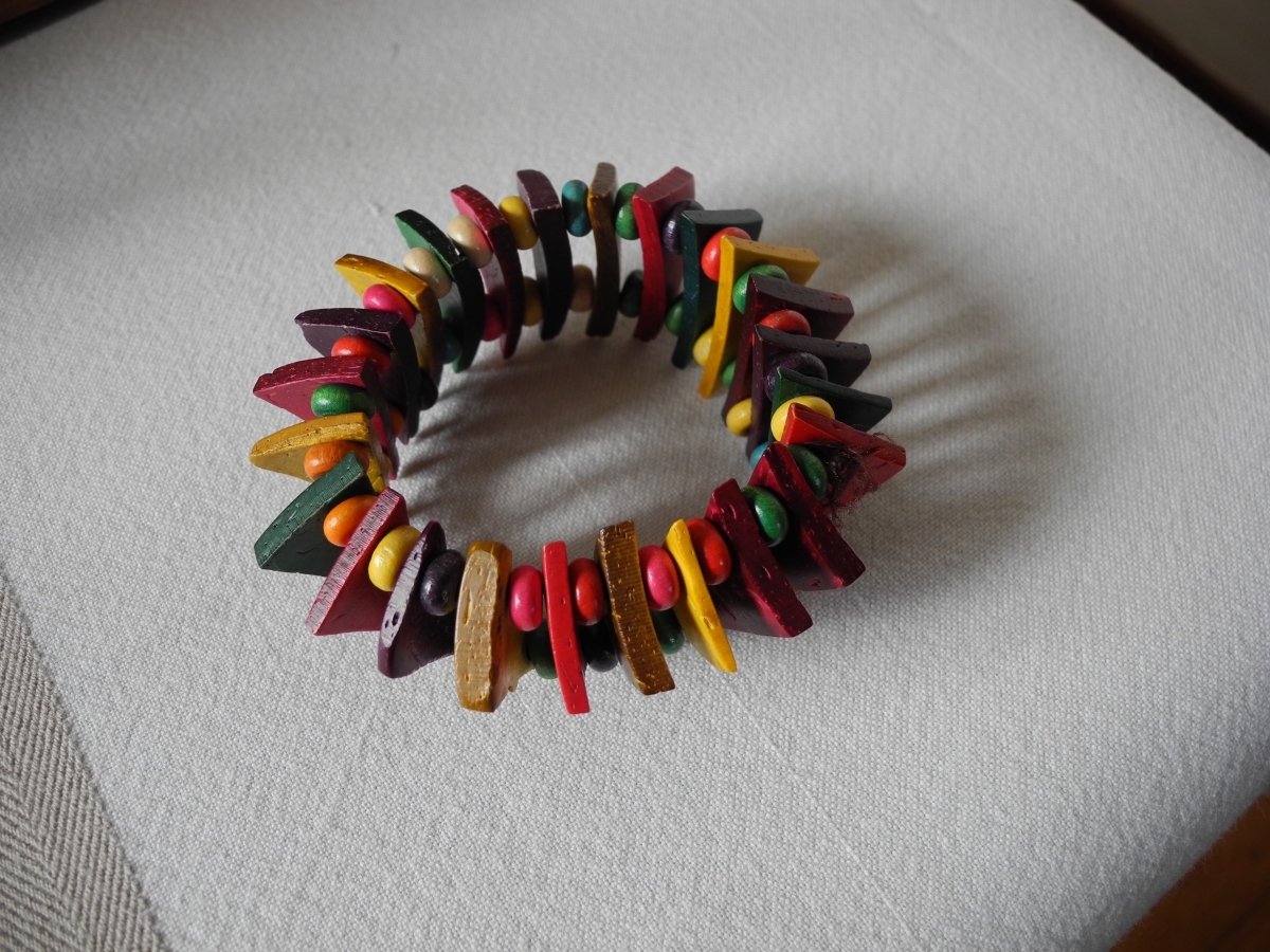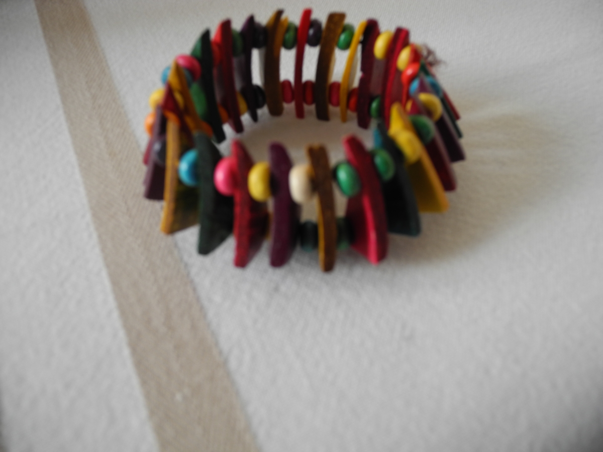 Triangles en Noix de coco peinte , Perles en bois / Relié par un élastique