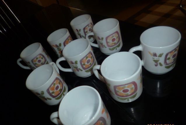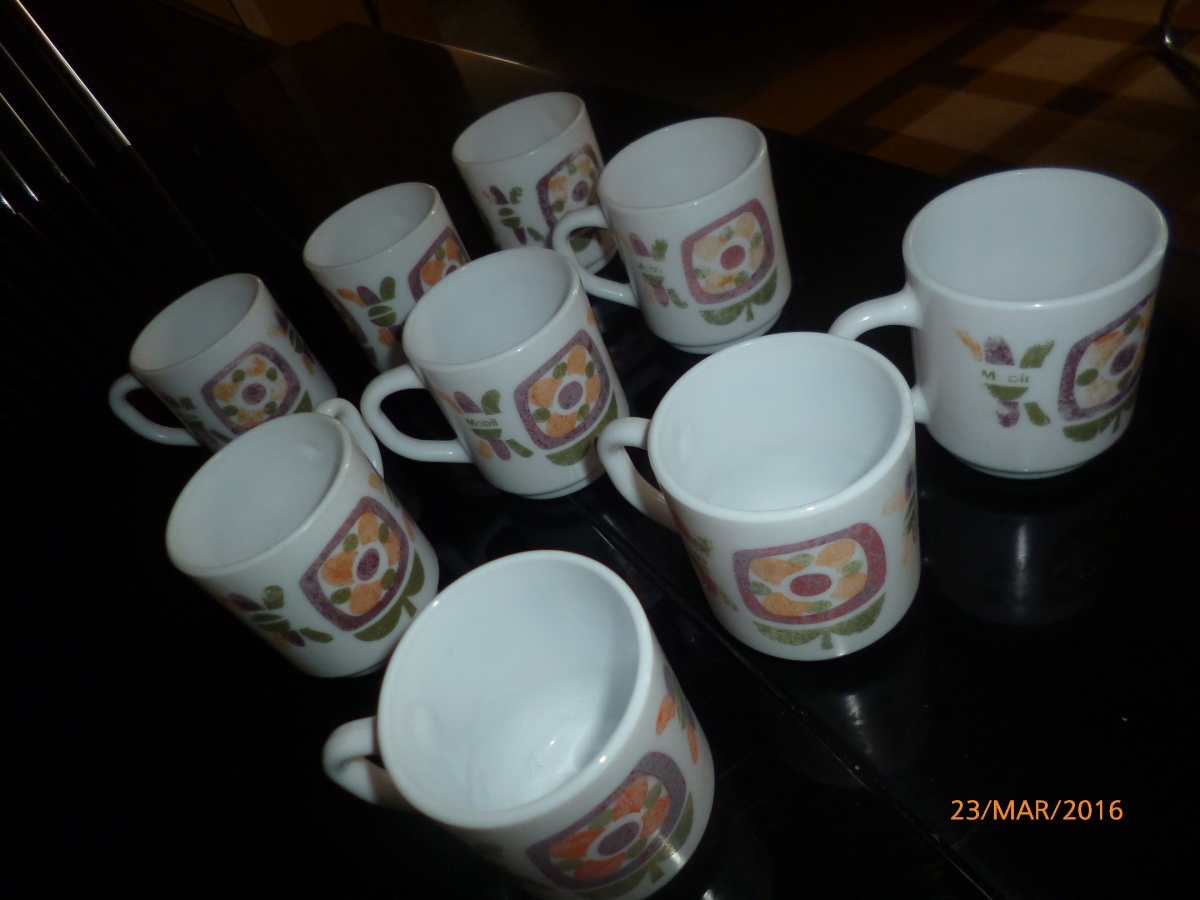 lot 9 petites tasses mobil attention ce ne sont pas des mugs les couleurs sont un peu passees lavages frequents