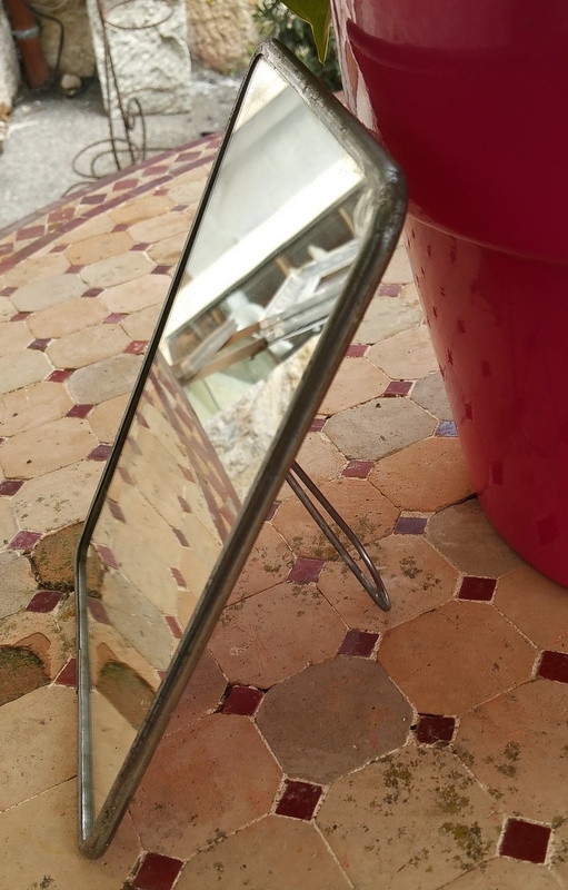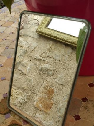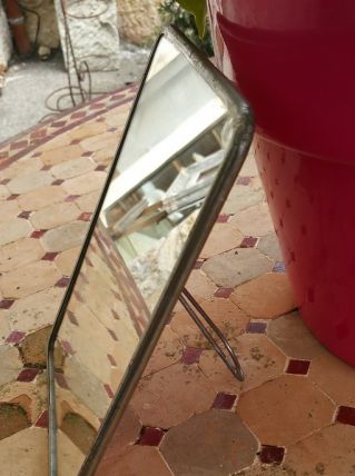 Miroir vintage 1930 triptyque barbier simili crocodile noir