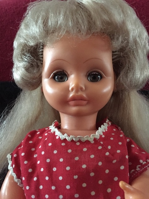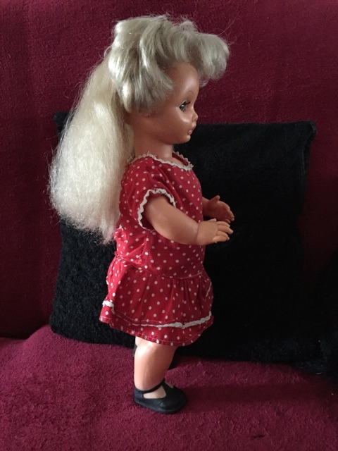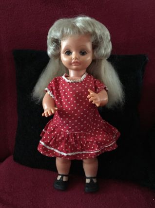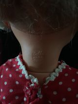 Très jolie poupée bella nova achetée en 1967. Yeux dormeurs, marquée Bella sur la nuque. Elle mesure environ 40 cm. Elle porte une belle robe à pois rouge, chaussettes et chaussures. Elle a toujours été conservée avec soin.