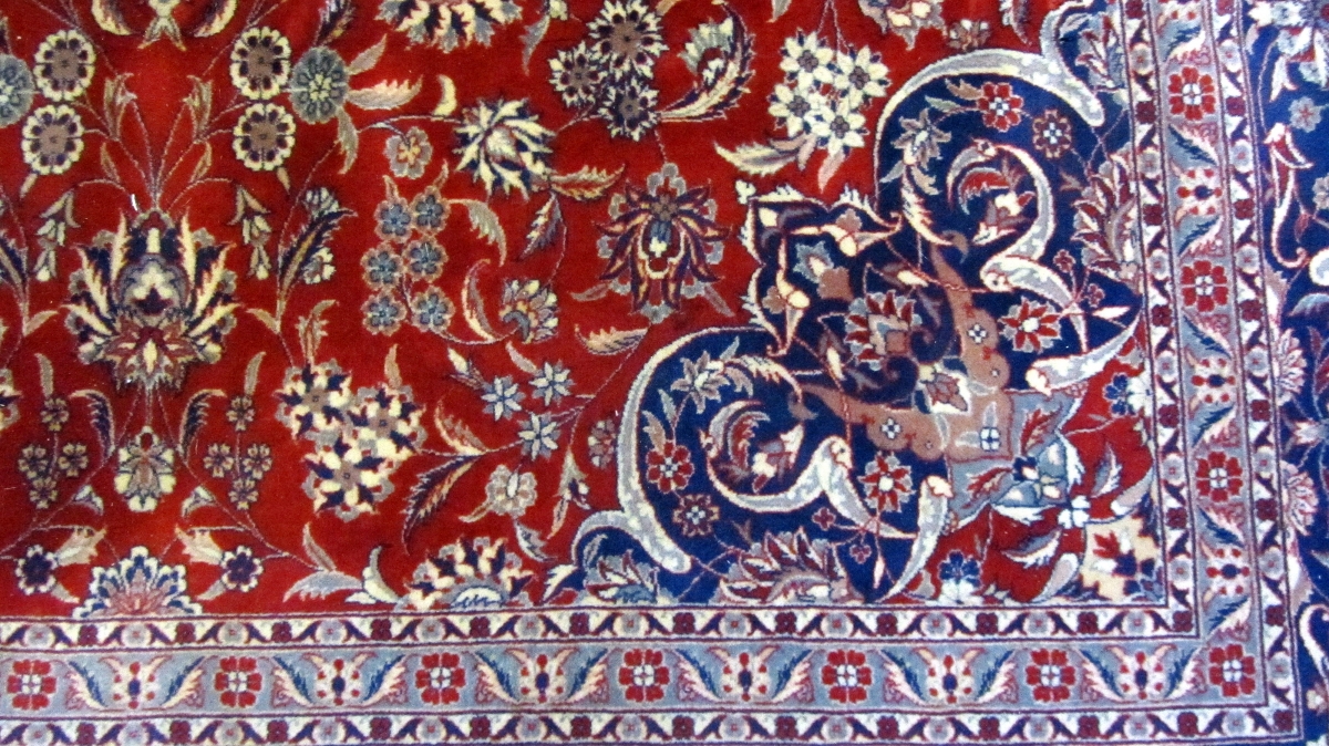 Pendant la dynastie des Sarafides (1502-1629) Isfahan était la capitale de l’Iran ou le Chah Abas avait rassemblé les meilleurs artisans de tapis noués à la main. C’est pendant cette période que les tapis les plus luxueux ont été réalisés. Les tapis d’Isfahan sont très fins et sont tondus très ras pour relever mieux leur dessin.