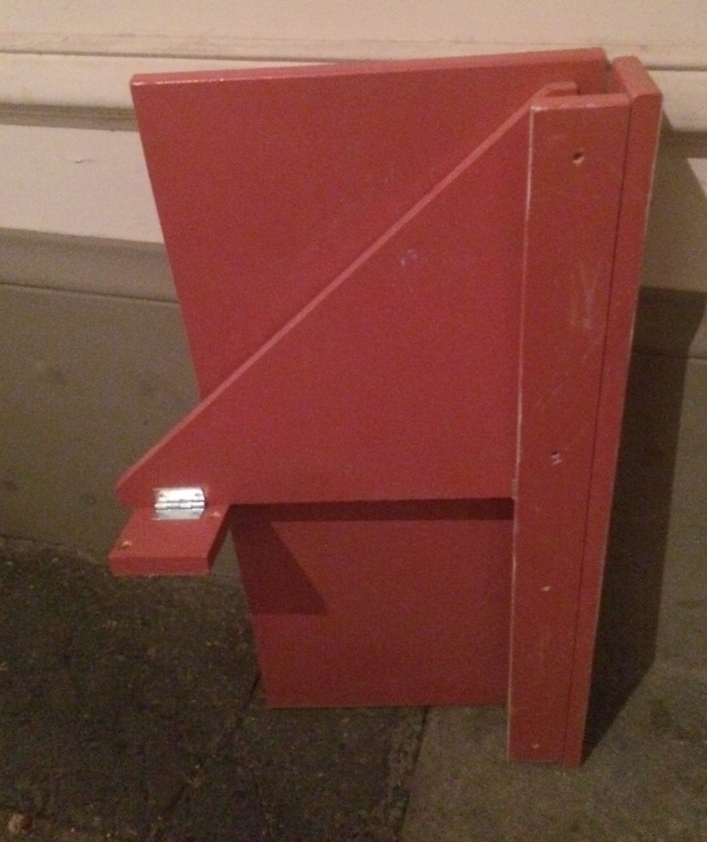 Table murale à rabat d'un joli rouge tomette mat. Bon état.