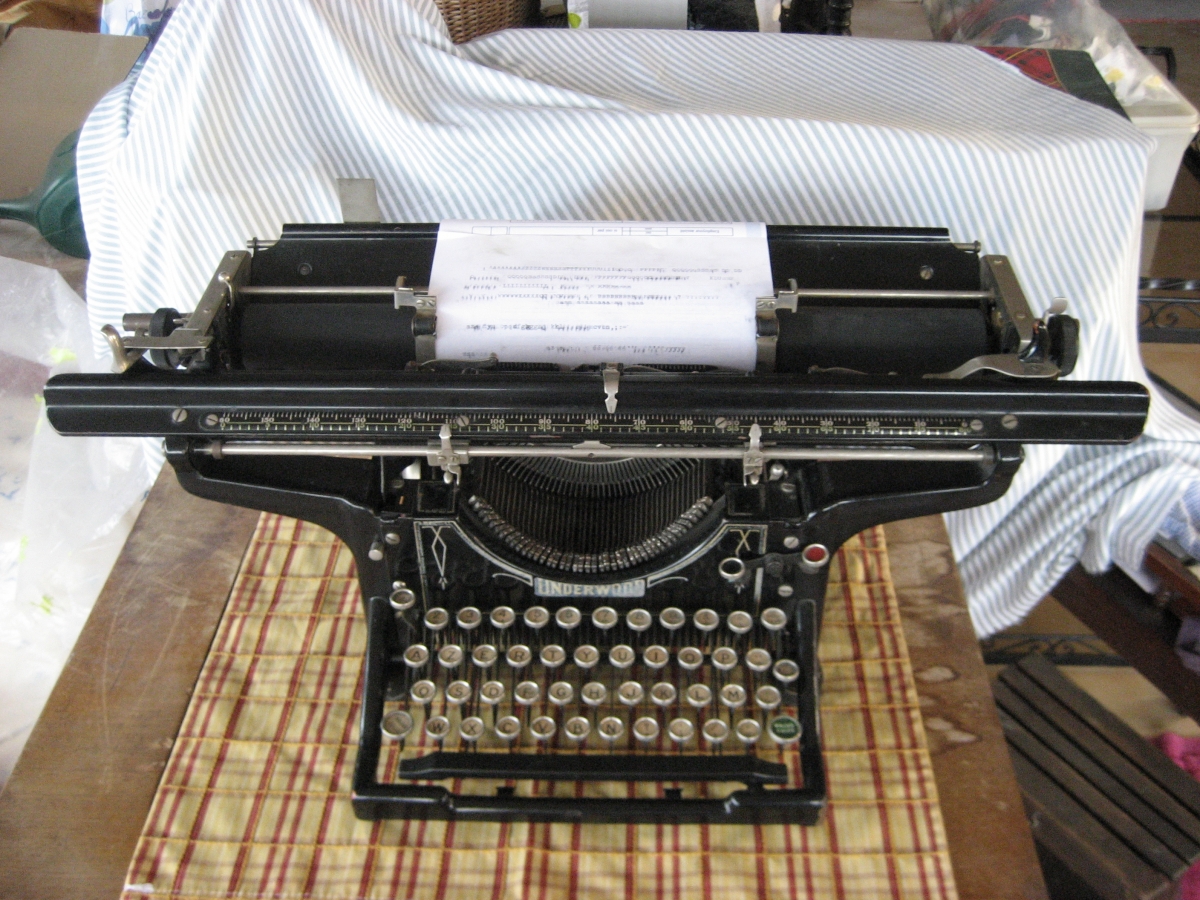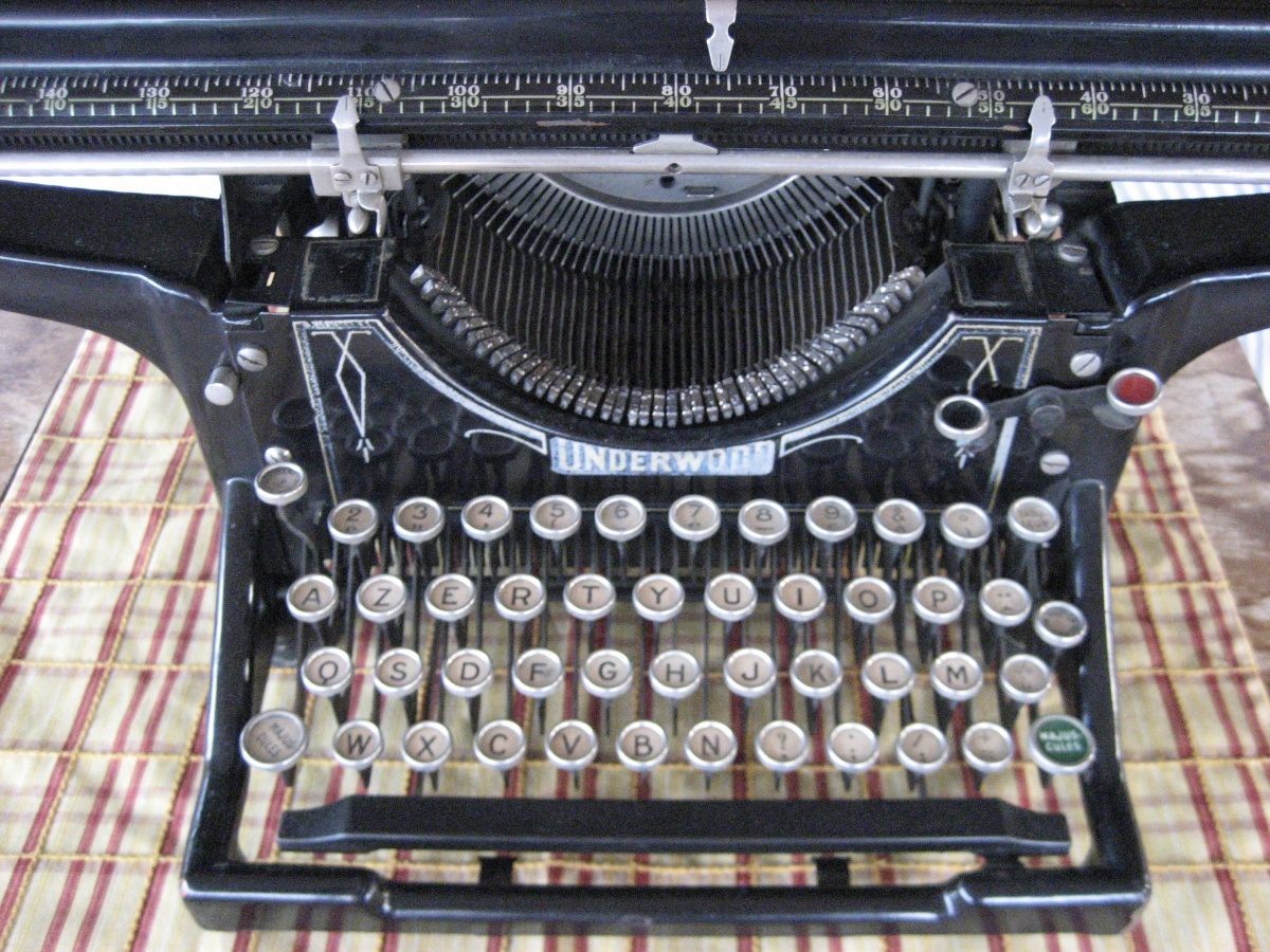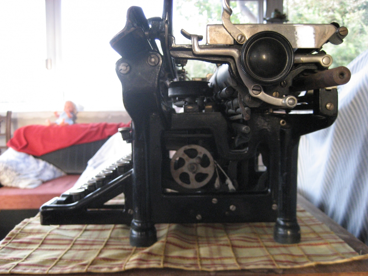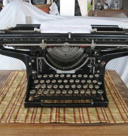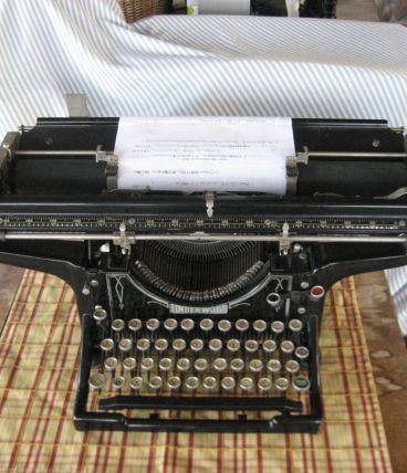 Machine à écrire en bon état de fonctionnement avec ruban noir et rouge de rechange .