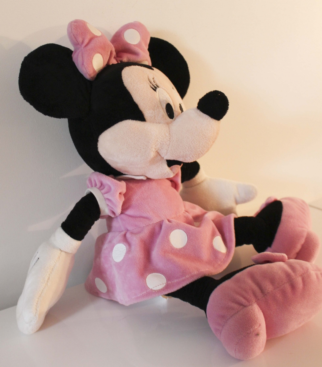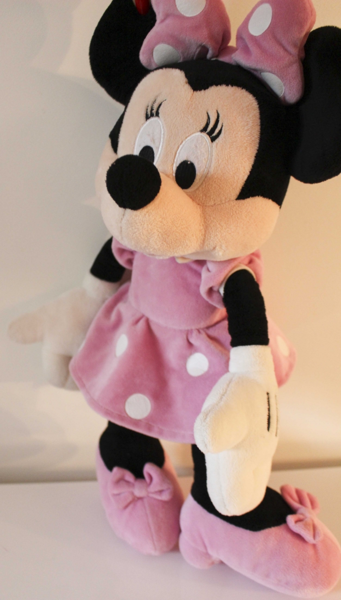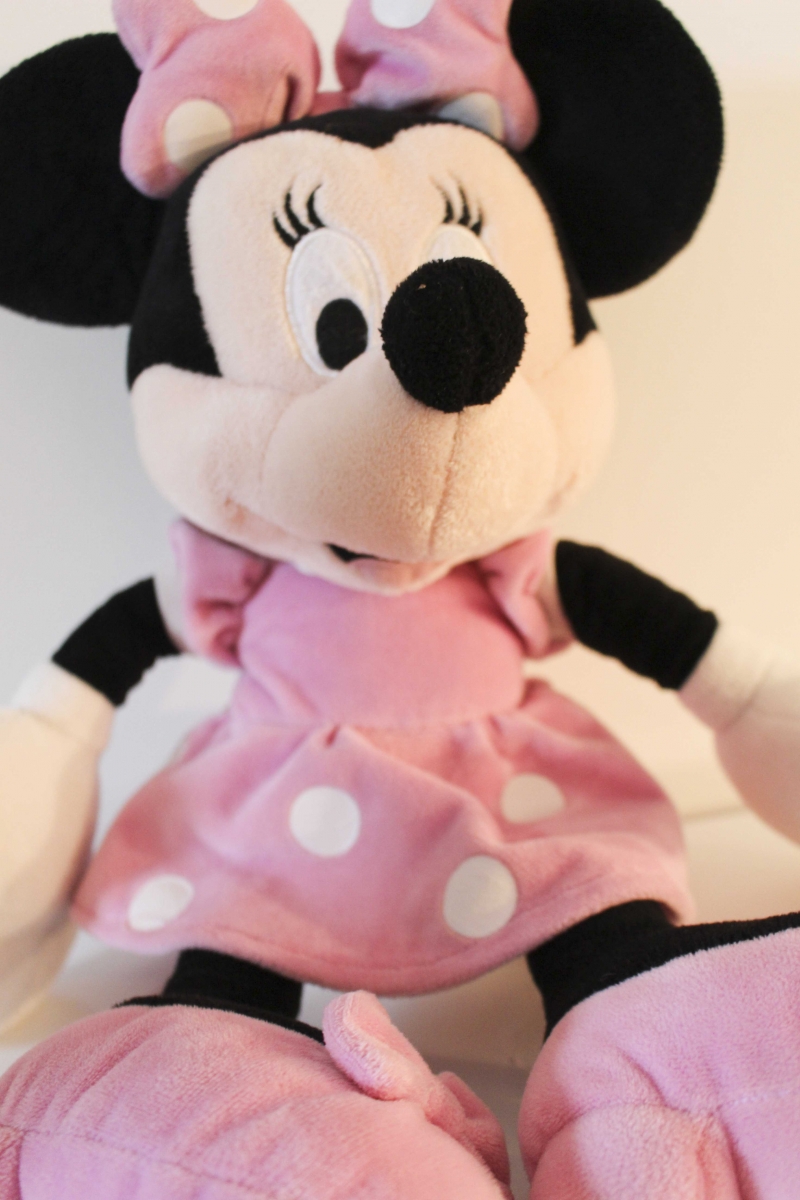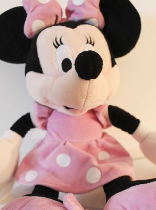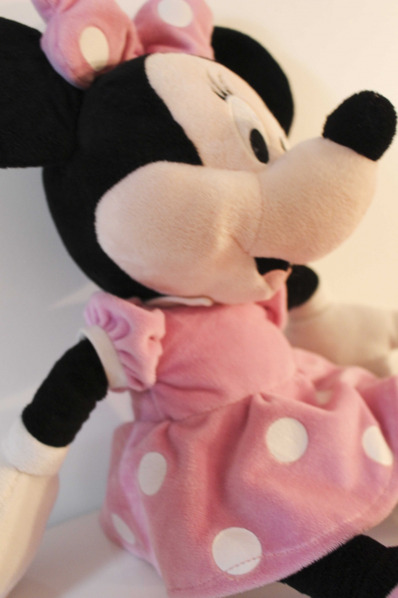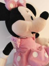 Cette Minnie est aussi mini que possible et absolument adorable et câline avec sa jolie robe, son nœud à pois et ses charmantes broderies !