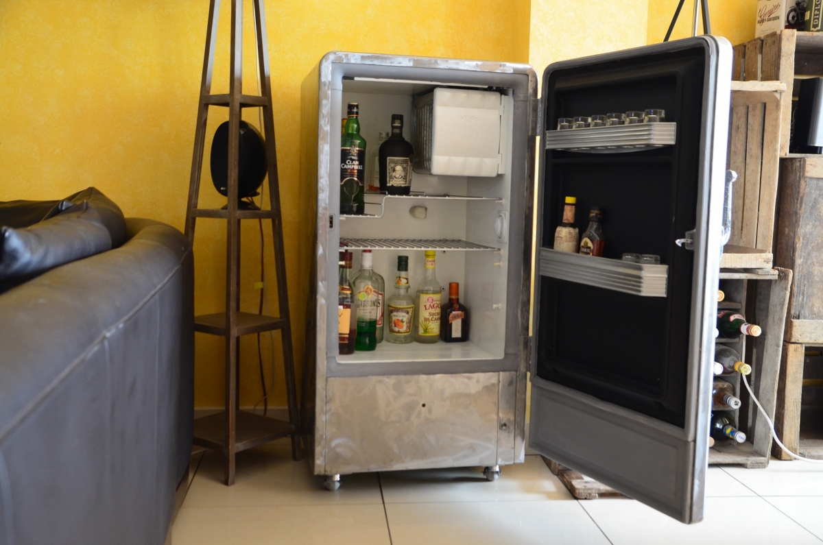 Frigo décliné en bar industriel vintage des années 50