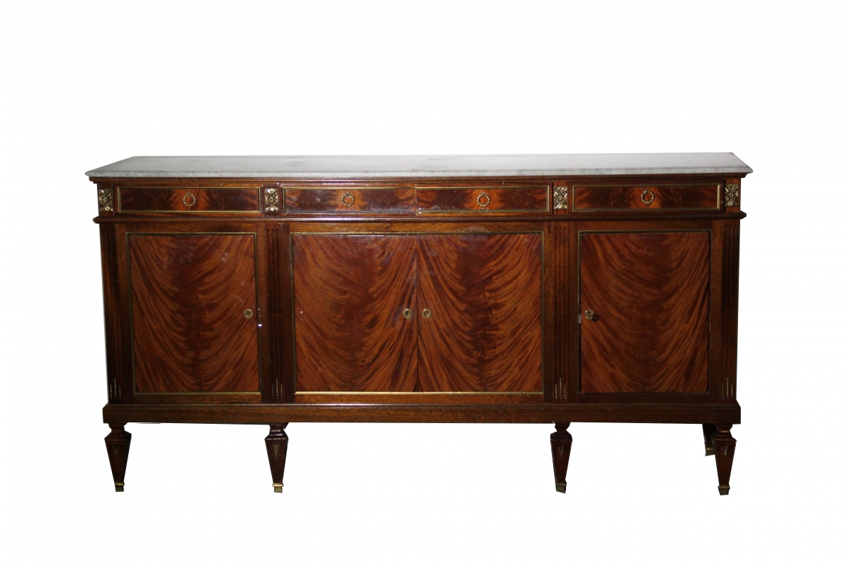 Buffet acajou enfilade en placage d'acajou à 4 tiroirs et portes