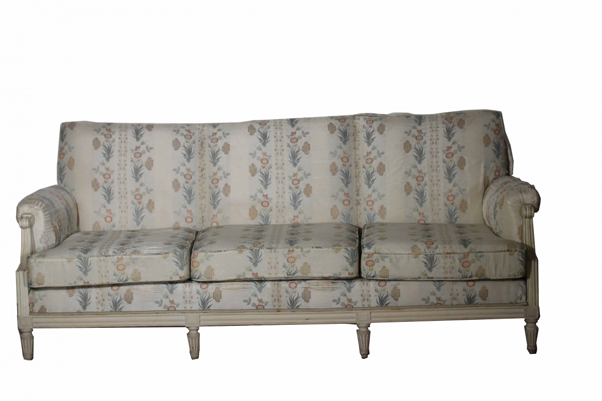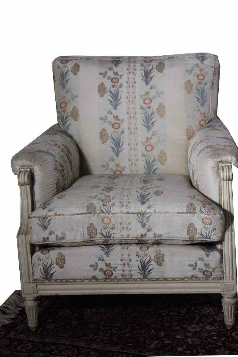 Paire de bergères et un canapé trois places en tissu de soie brodé