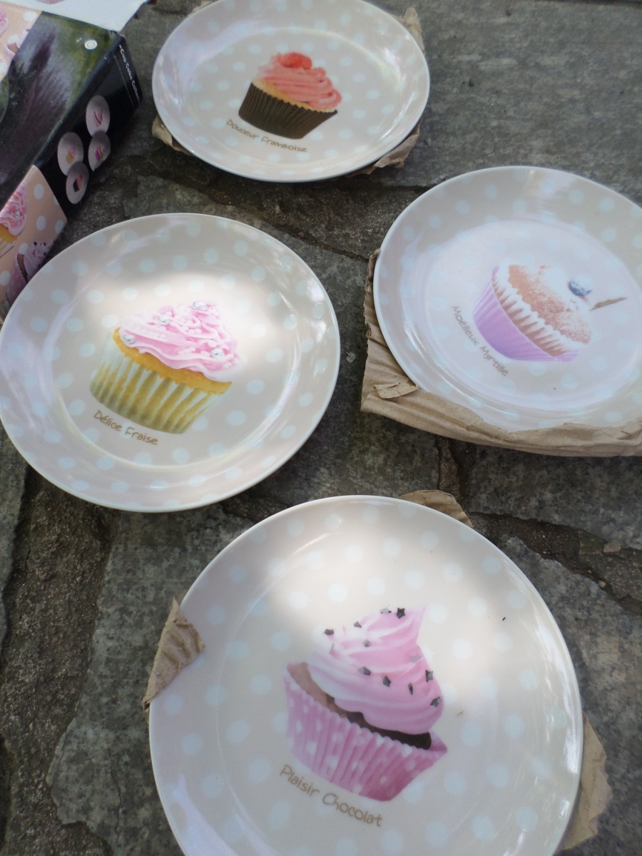 Vends ce lot de 4 assiettes à dessert "Cupcakes".