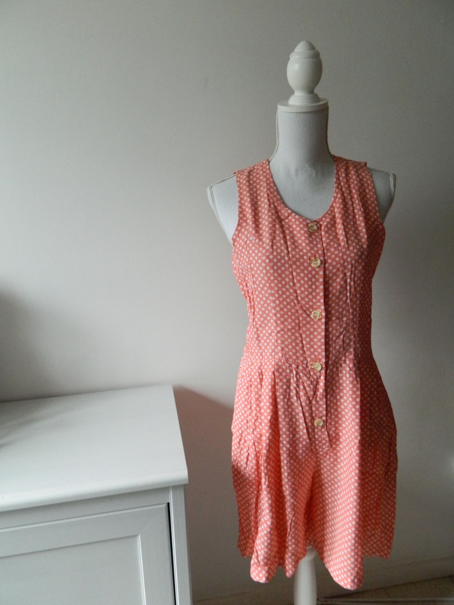 Superbe combishort rose saumon avec des pois blancs, datant des années 60.