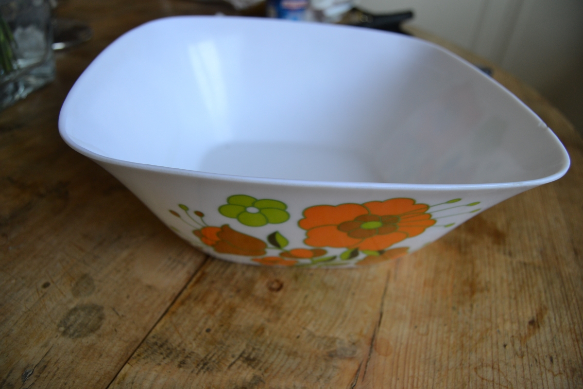 Ancien saladier en mélamine de la maque Téfal, une toute petite éraflure sur un coté