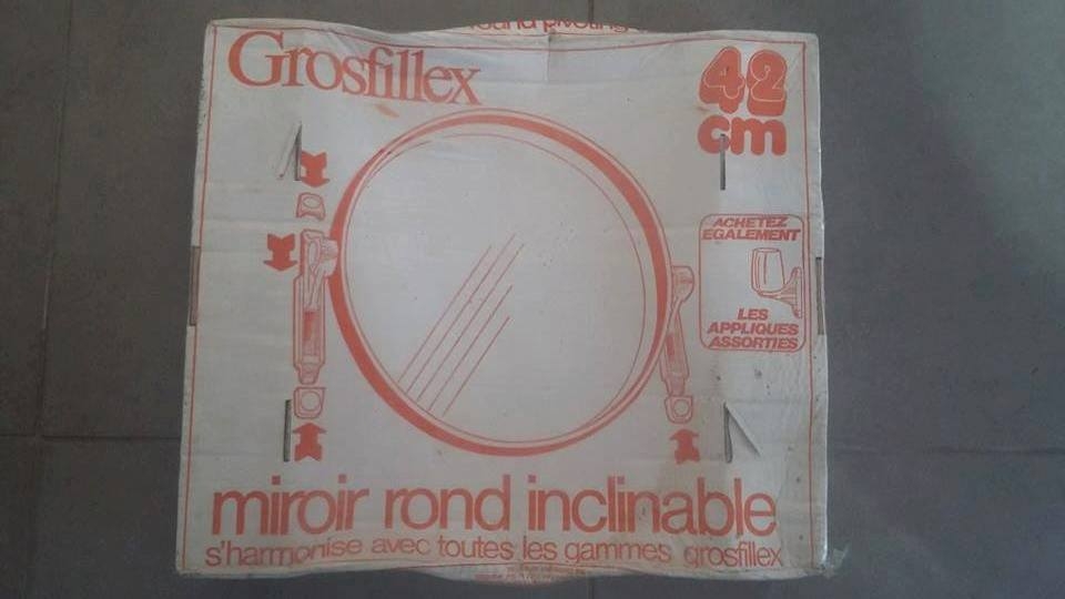 Miroir GROSFILLEX orange inclinable années 70 NEUF! D 42 cm