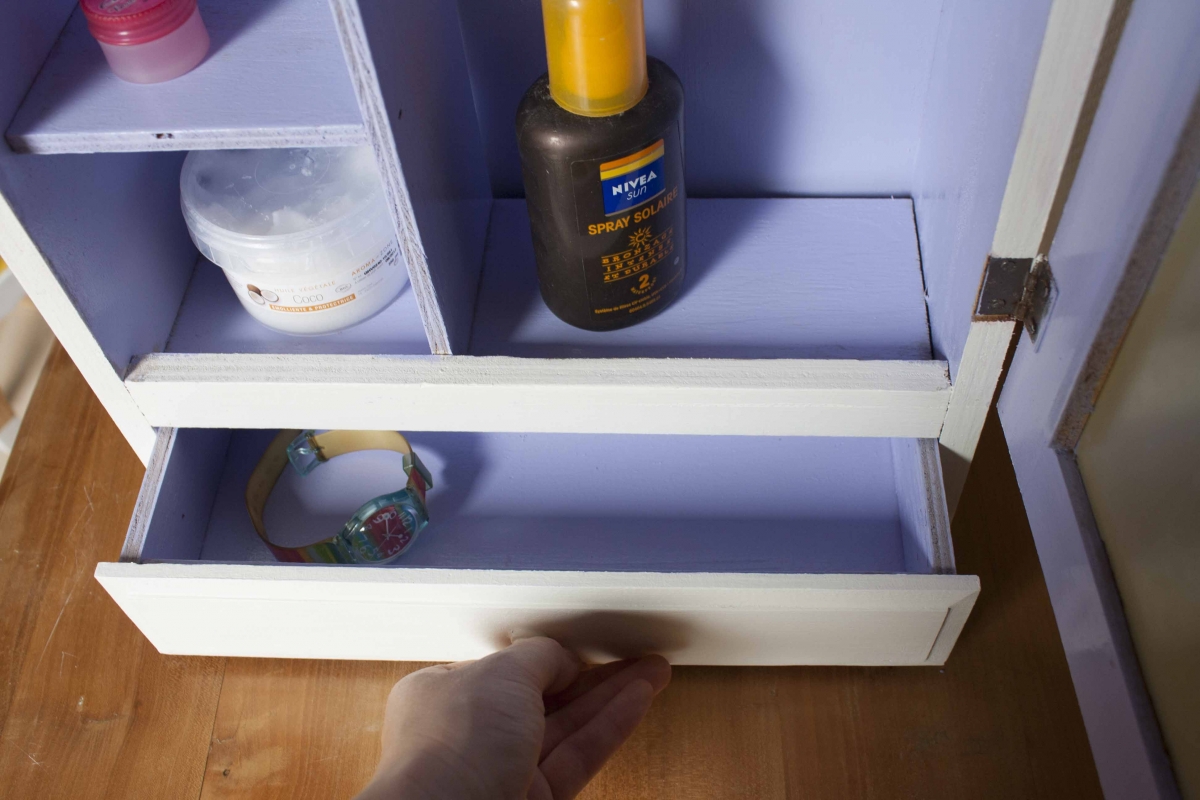 meuble parfait pour la salle de bain avec son miroir et un petit tiroir