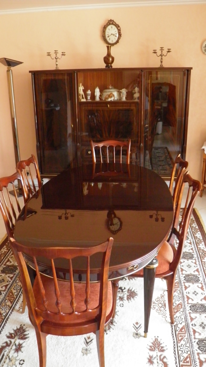 table ovale L 1m80, l 1 m, plus 2 rallonges.