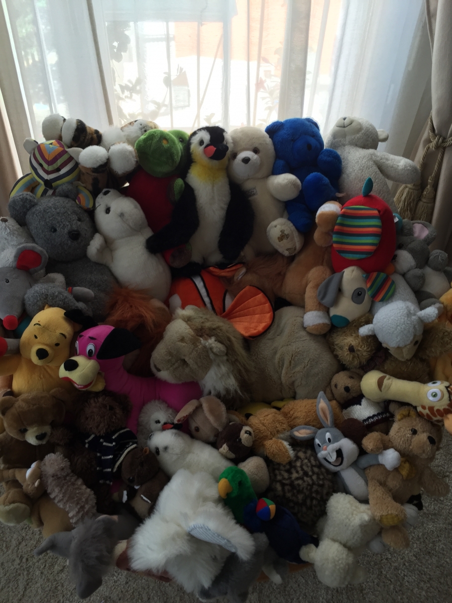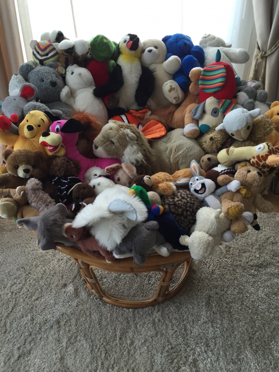 Chaque peluches à été recyclé monté les unes les autres en un seul bloc que l'on peut soulever.