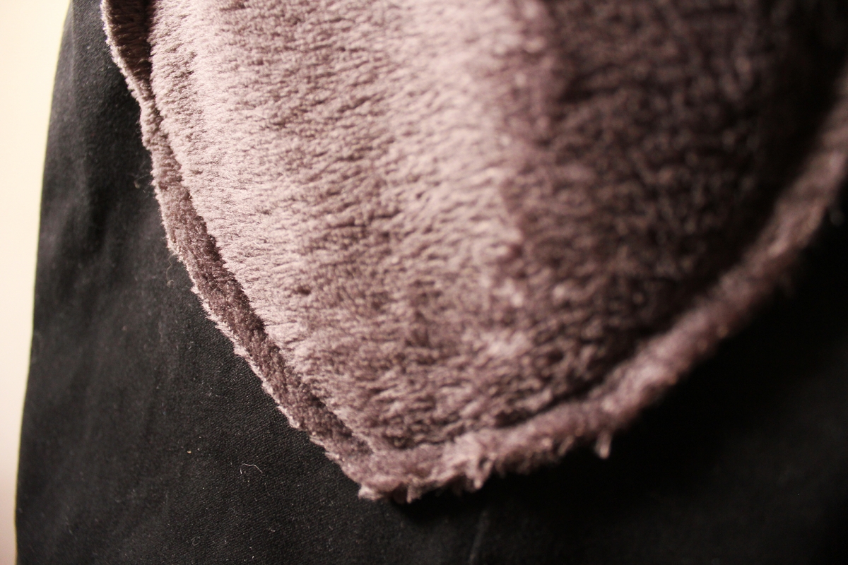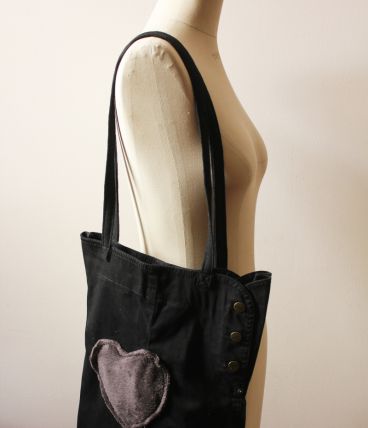 Cœur en pilou gris trèèèèès doux ; grandes anses, bonne contenance.