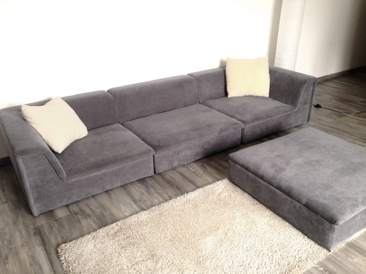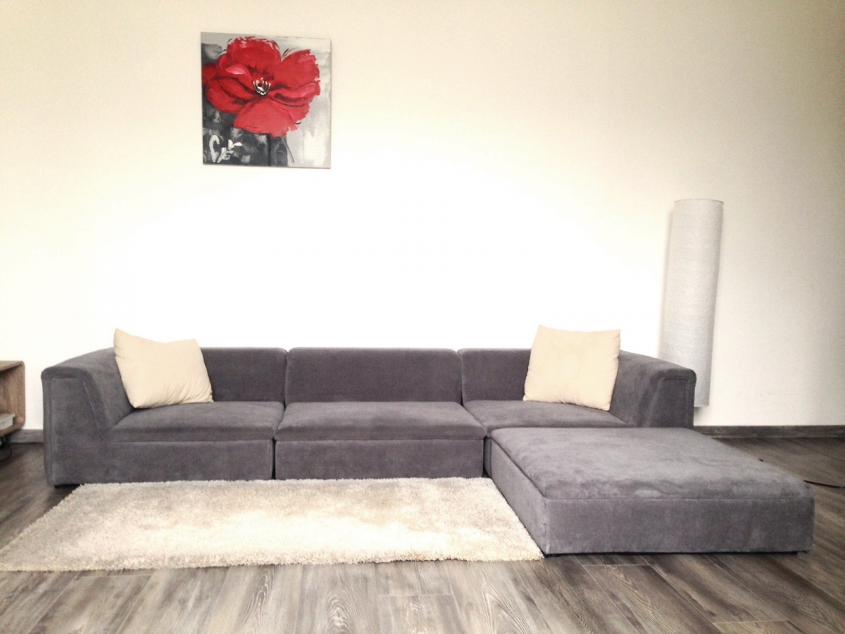 Canapé d'angle modulable - Tissu gris - Comme neuf
