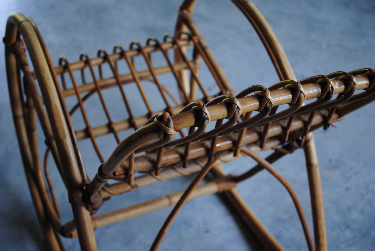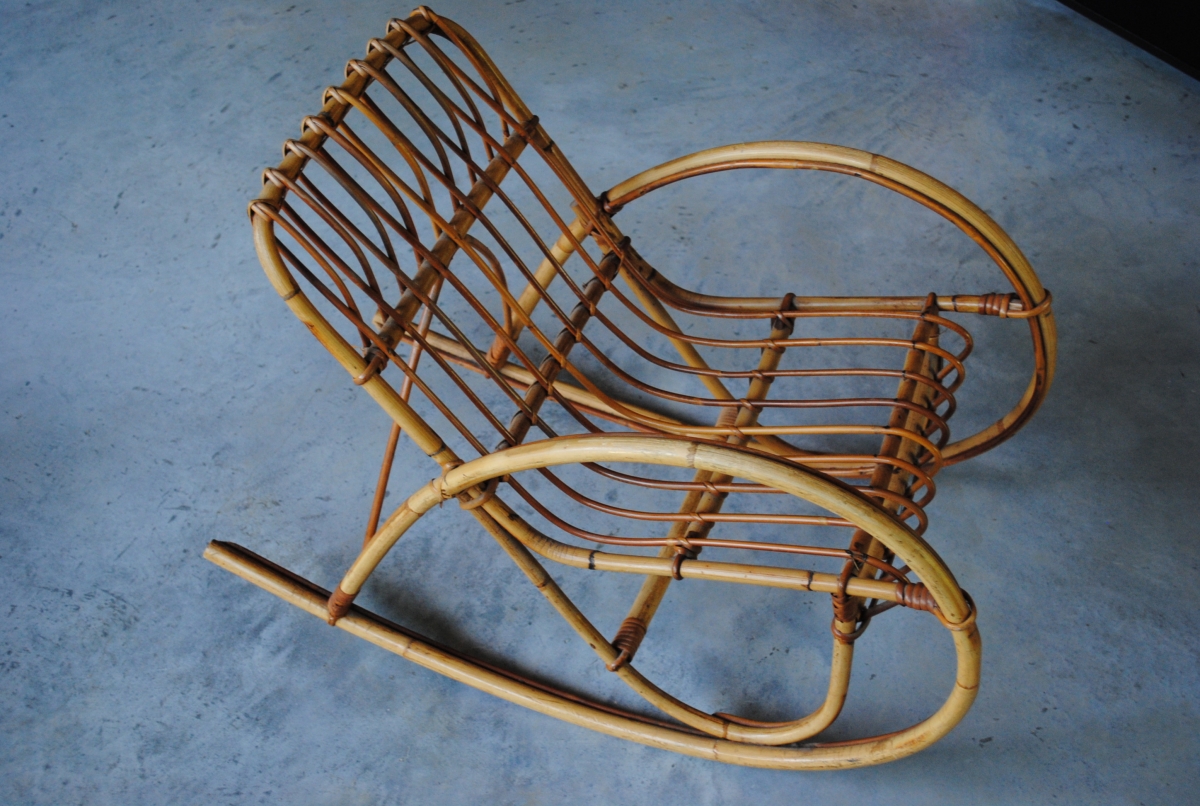 Rocking chair chair pour enfant dans son jus et au très beau travail du rotin.