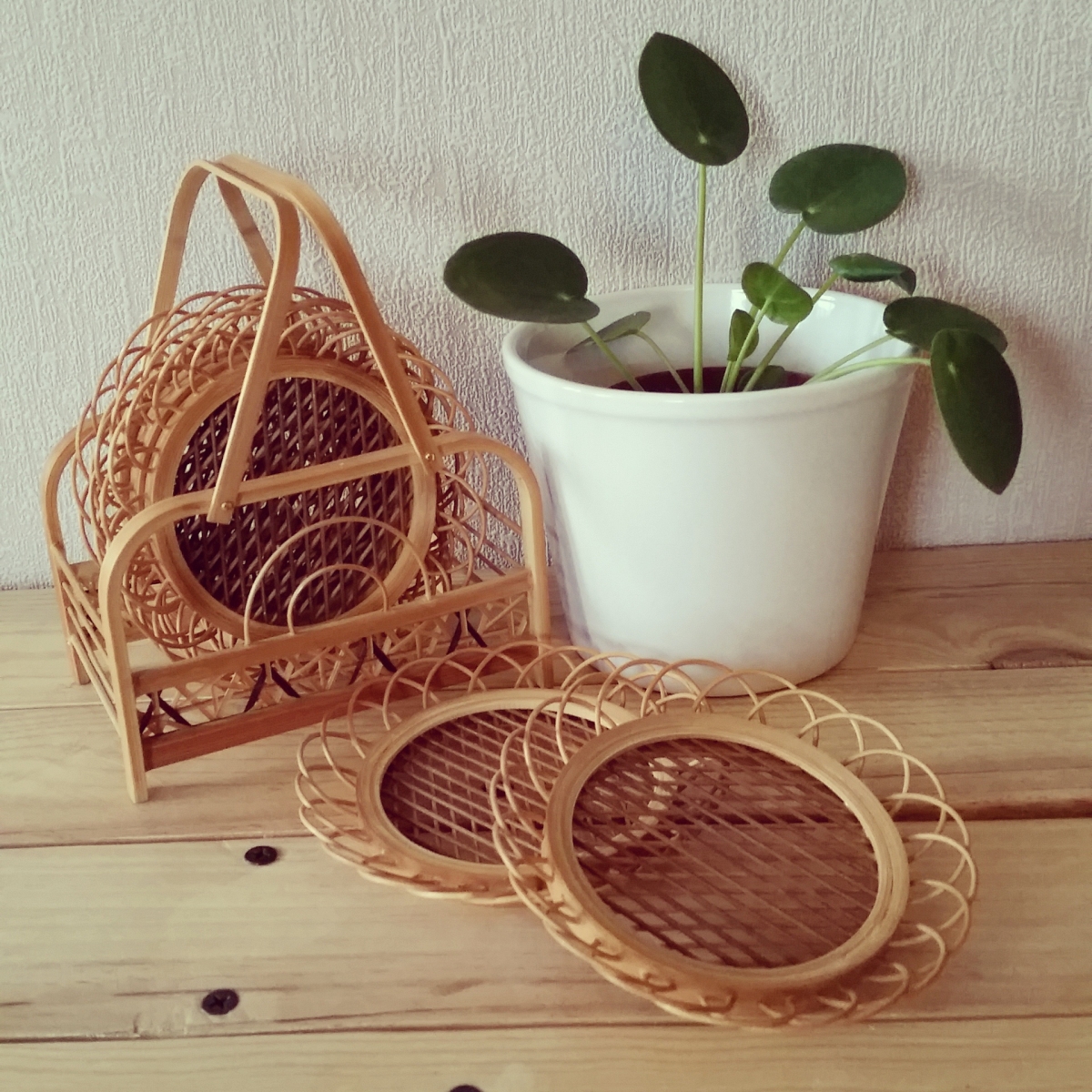 Petits dessous de verres en osier/bambou avec leur rangement.