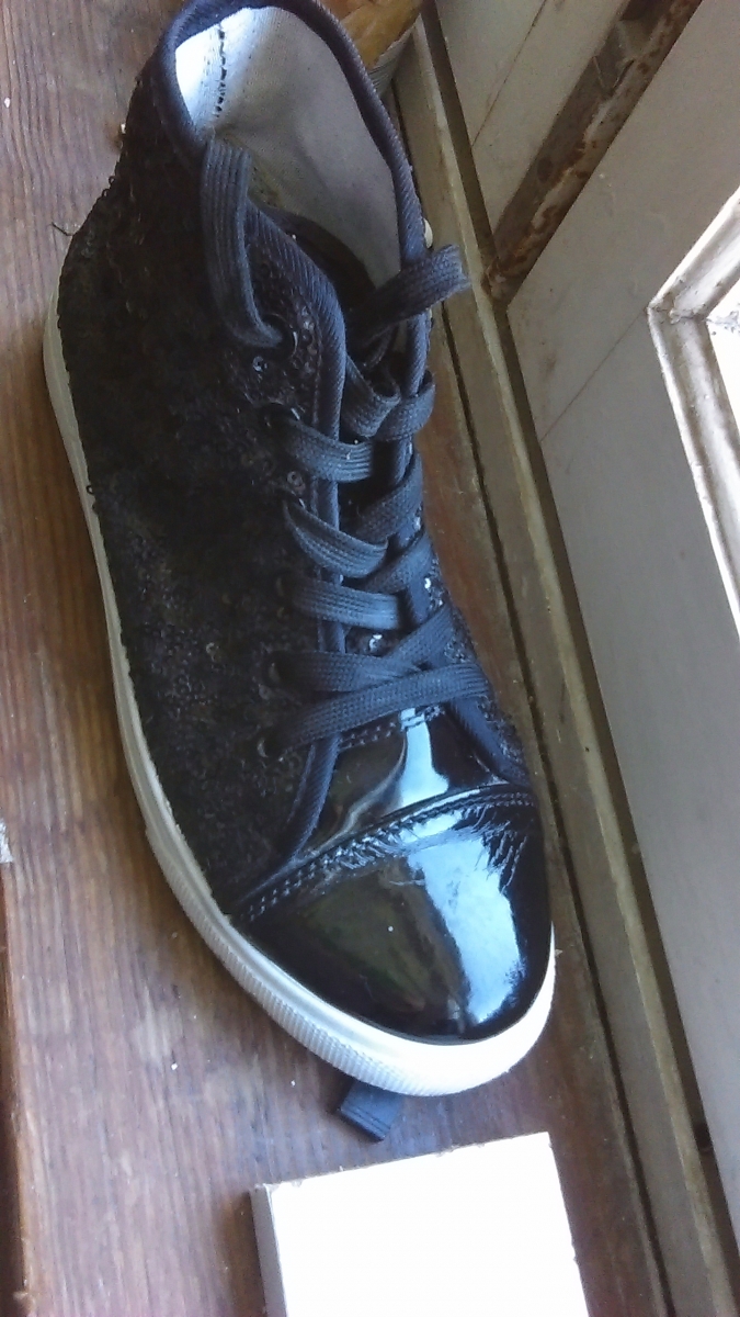 tennis a paillettes, bout brillant. semelles semi-hautes