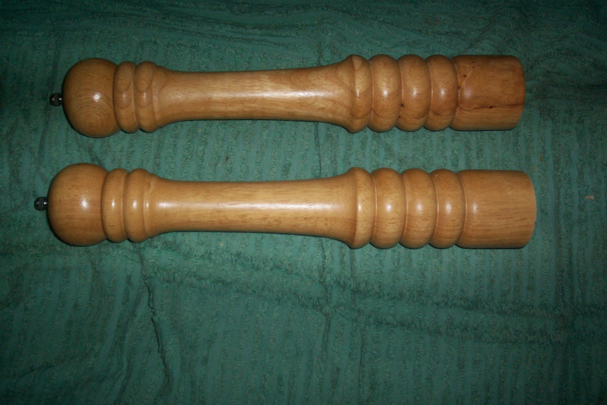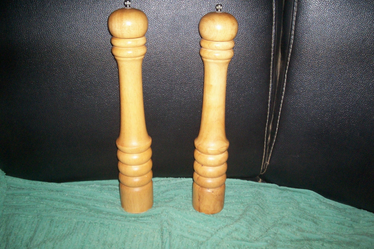 2 moulins à poivre en bois tourner 40 cm de haut de marque stainless stell lot d'çoccasion .