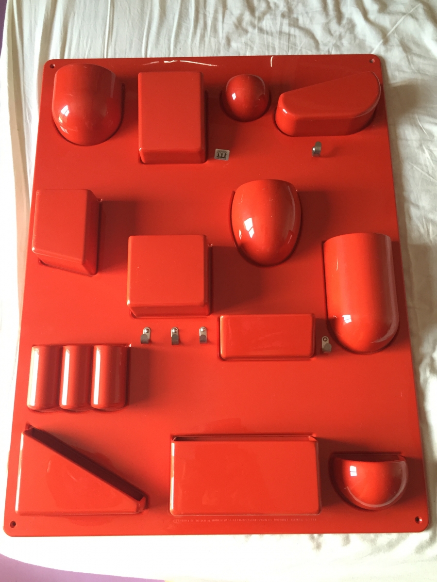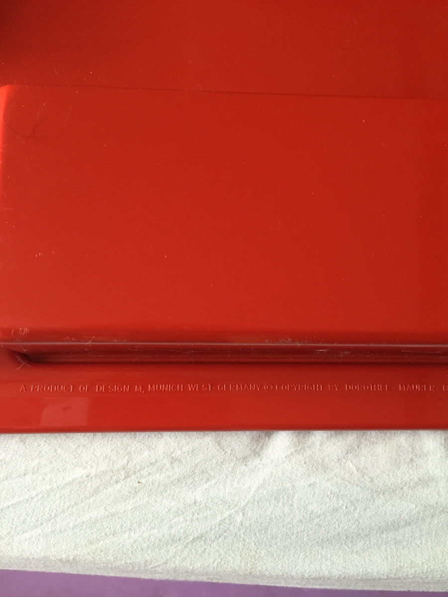 Vide poche vintage première édition de l ´Untel Silo d'Ingo Maurer pour DOrothee Becker produit à Munich. Trés bon etat jamais utilisé (crochets d origine). Couleur rouge. Rare Les frais de ports sont à définir en fonction du lieu d'achat. Remise en main propre possible.