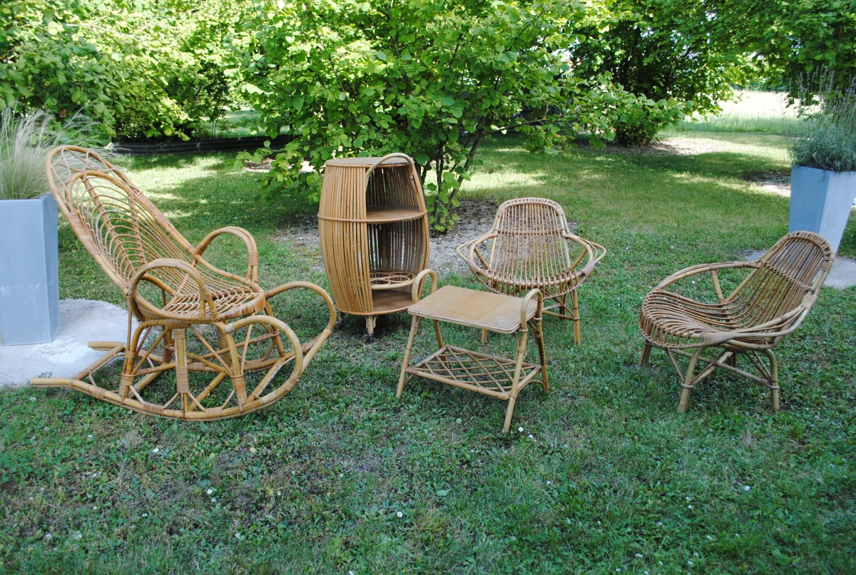 Très joli chevet en rotin des années 60/70 . Dans jus , en bon état.