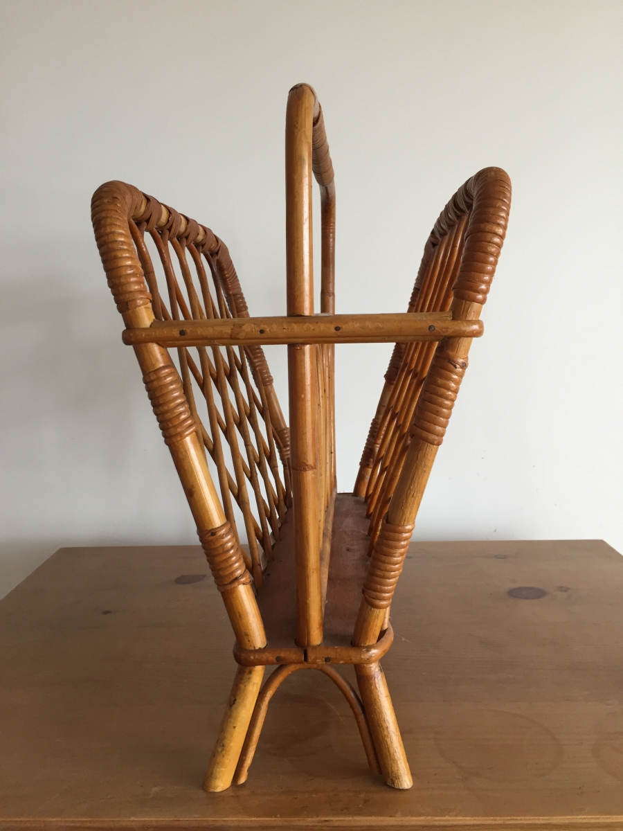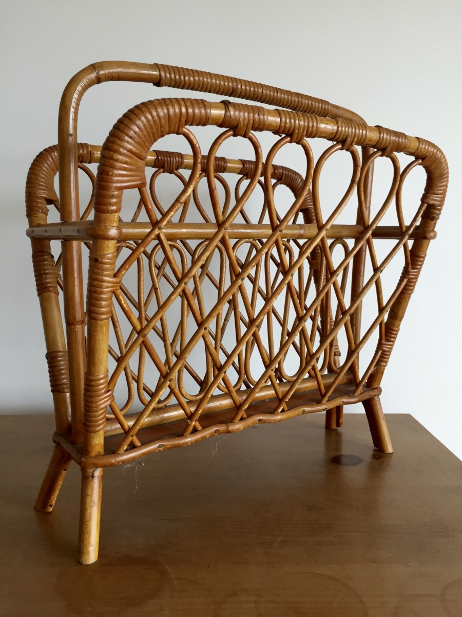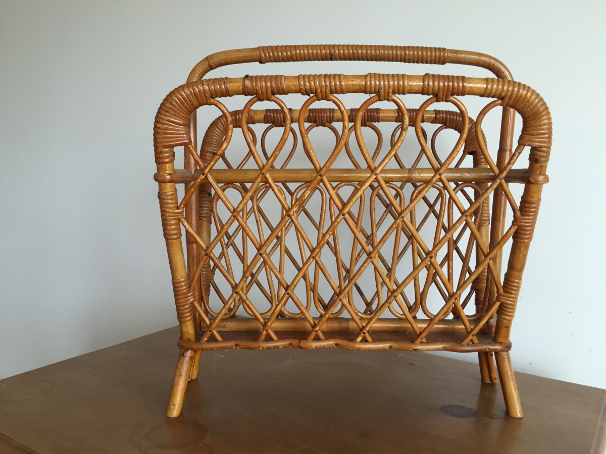 Porte-revues vintage en osier dentelle en bon état.