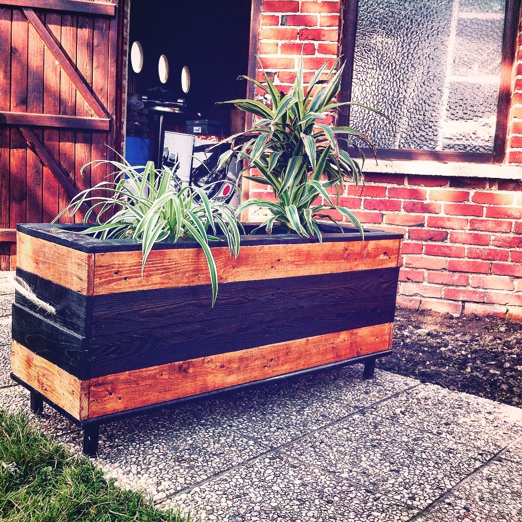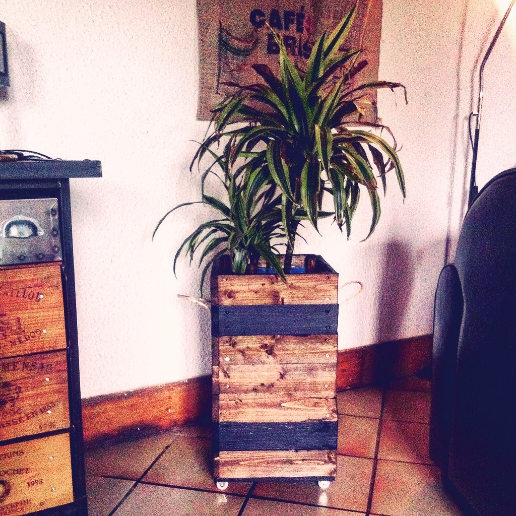 Jardinières en lattes de palettes, sur commande. Base: lasure et vernis.