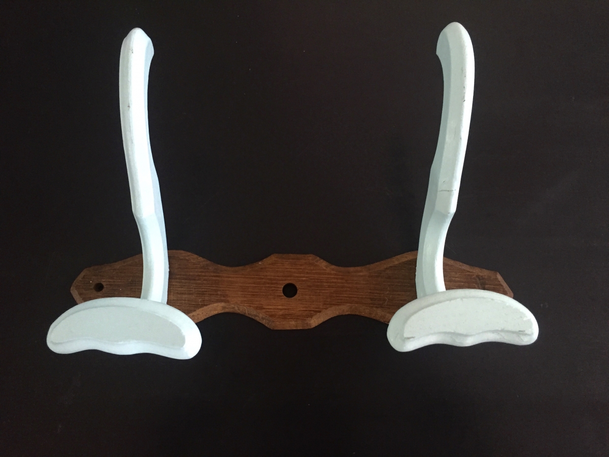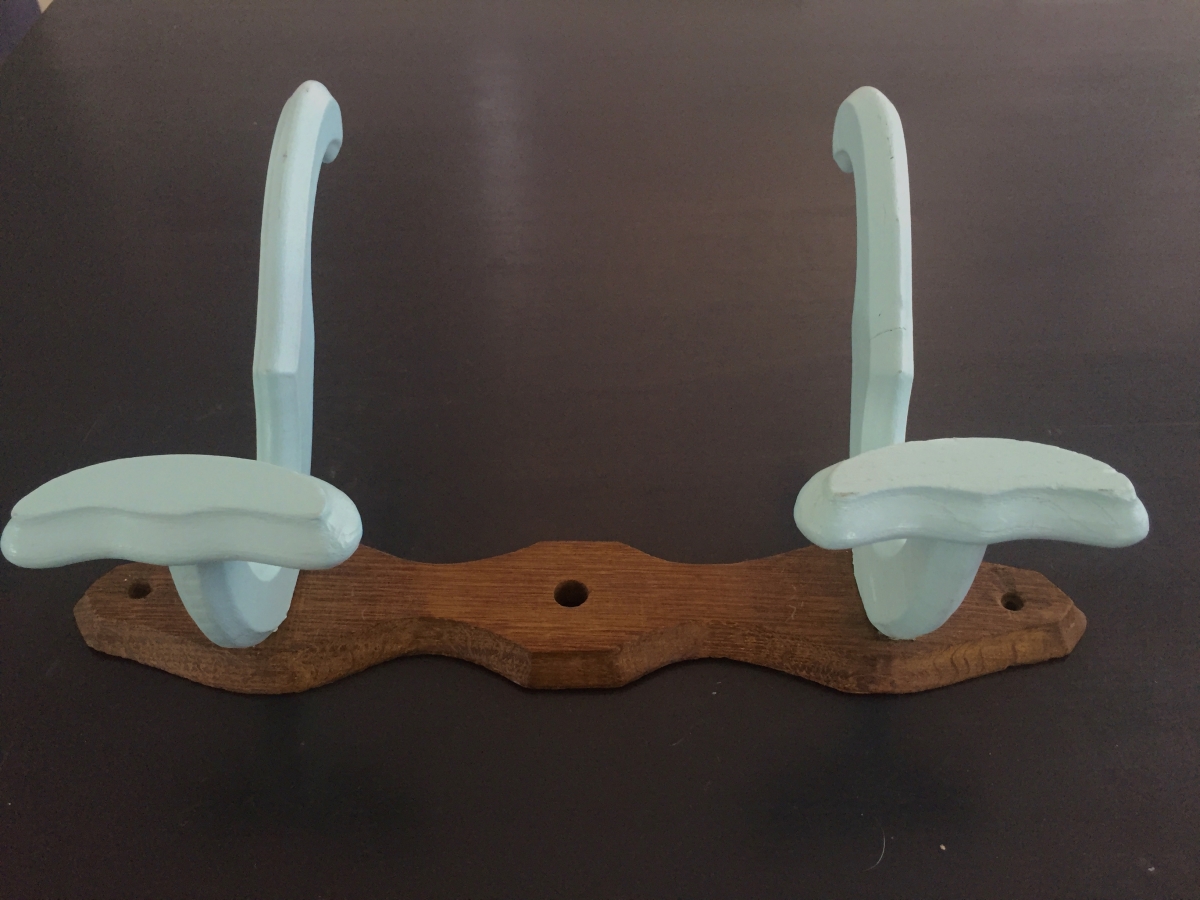 Patère "Bois de cerf" bois brut et bleu glacier.