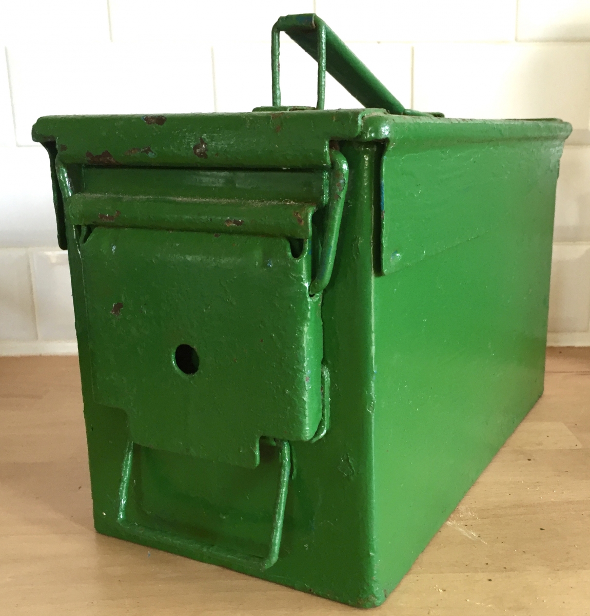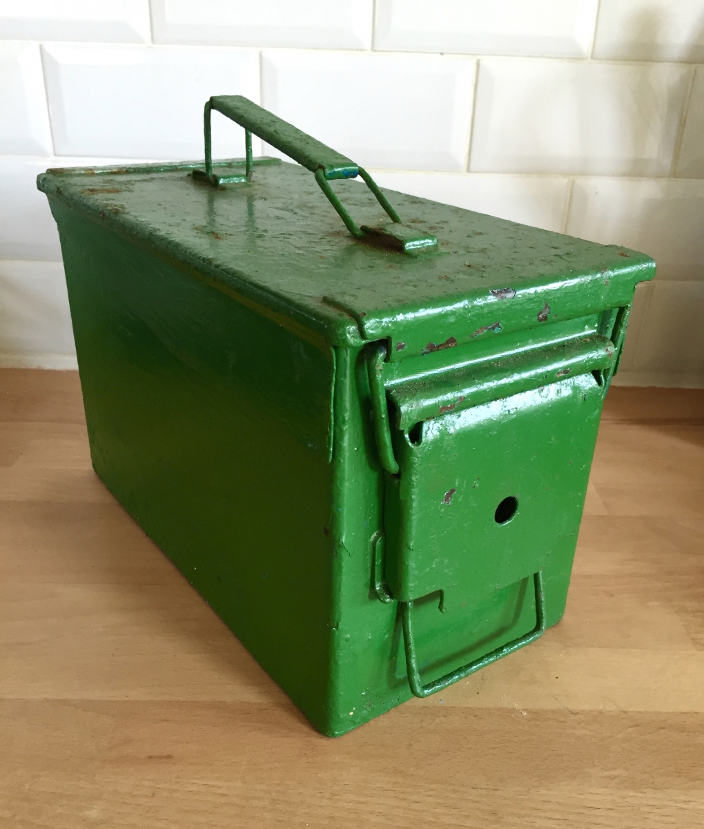 Cette boite à munitions vert pomme, qui vient probablement de l'armée française, serait parfaite dans une cuisine pour y ranger vos épices, ou dans la salle de bains pour vos produits de beauté.