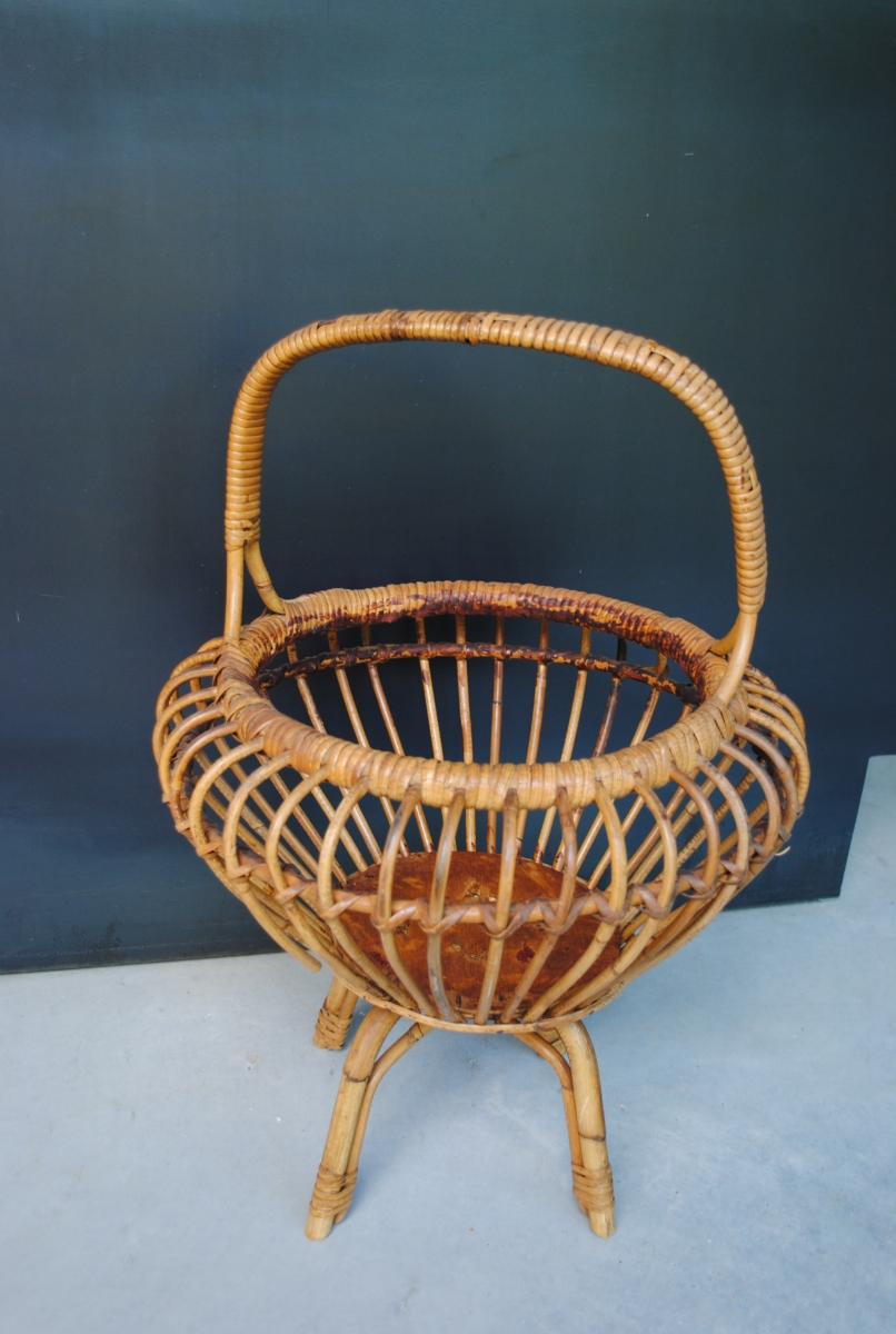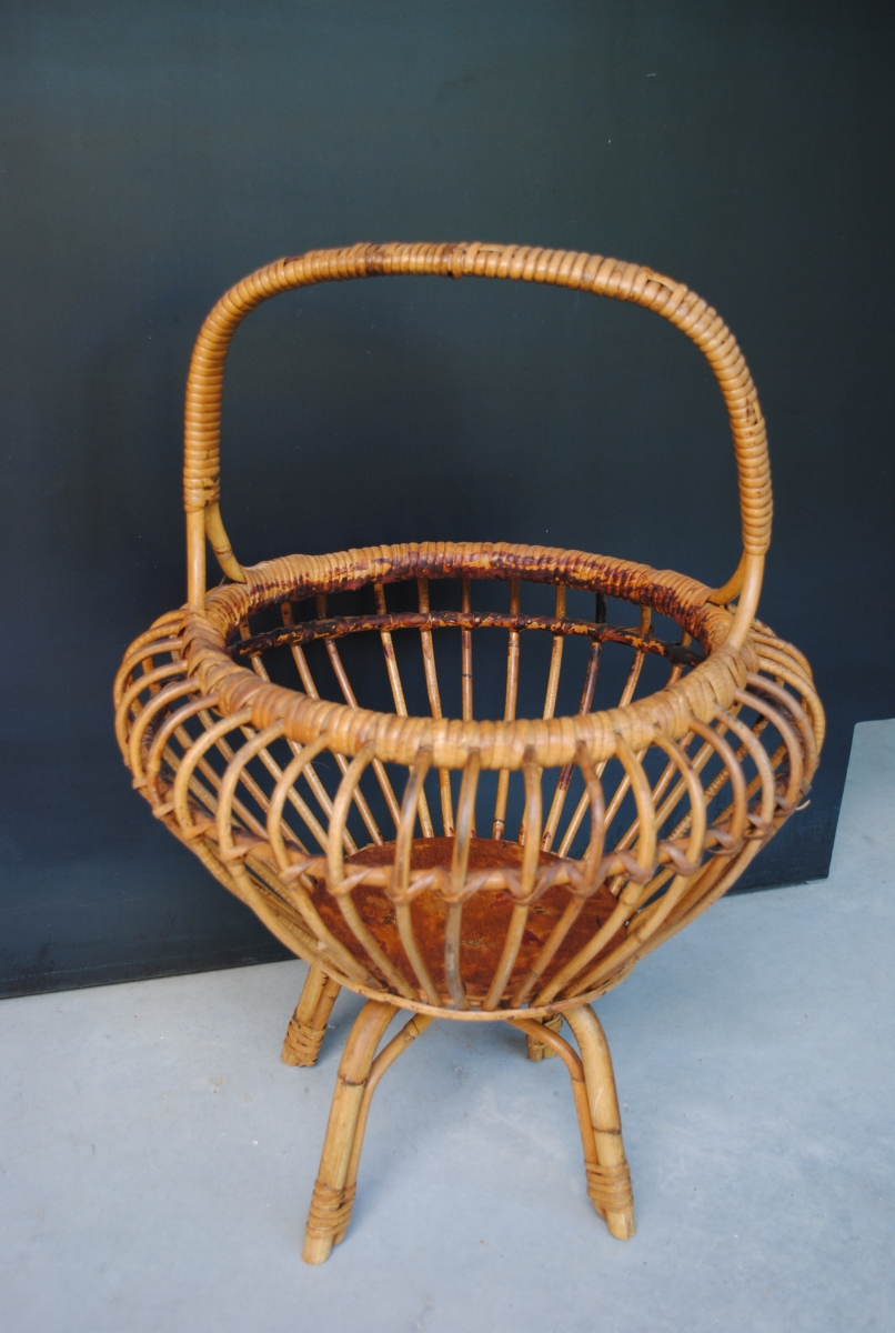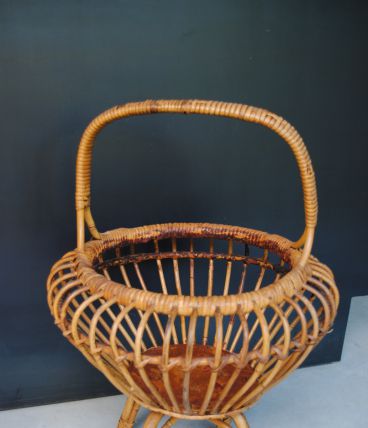 Panier rotin vintage diamètre 42 cm , hauteur 60 cm.