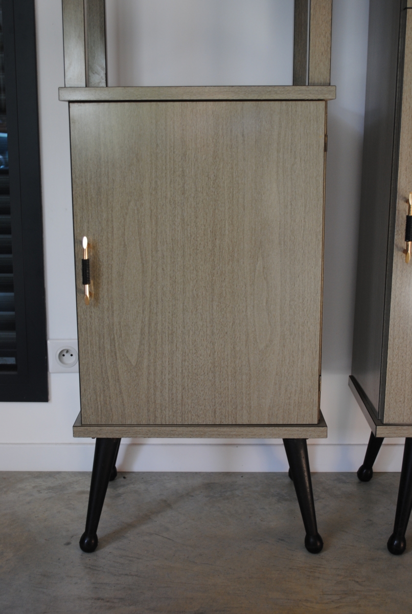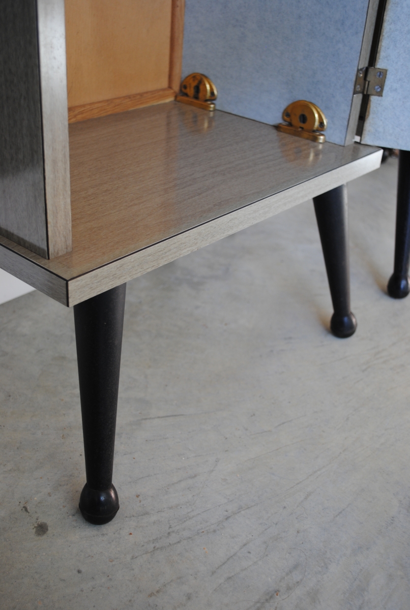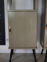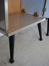 Meuble étagère formica année 50 pieds compas en métal . Bon état vu l'age . Hauteur 178 cm , largeur 48 cm , profondeur 32 cm . A retirer sur place dans l'aube 10 .Possibilité de livrer en Champagne Ardenne sur devi