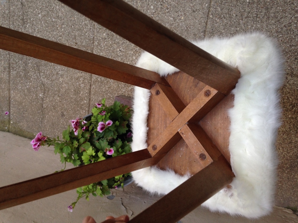 Tabouret moumoute vintage bois pieds compas