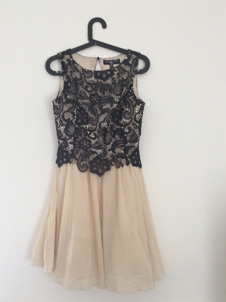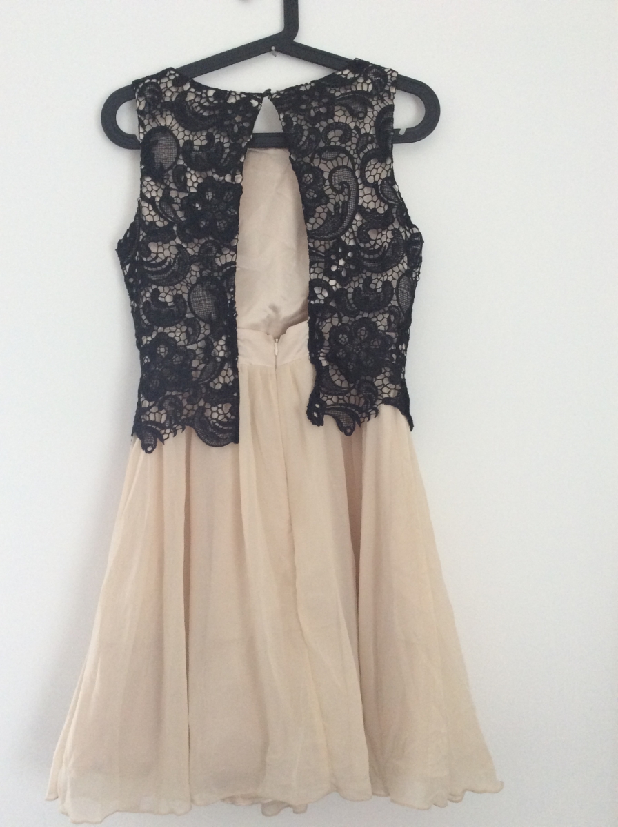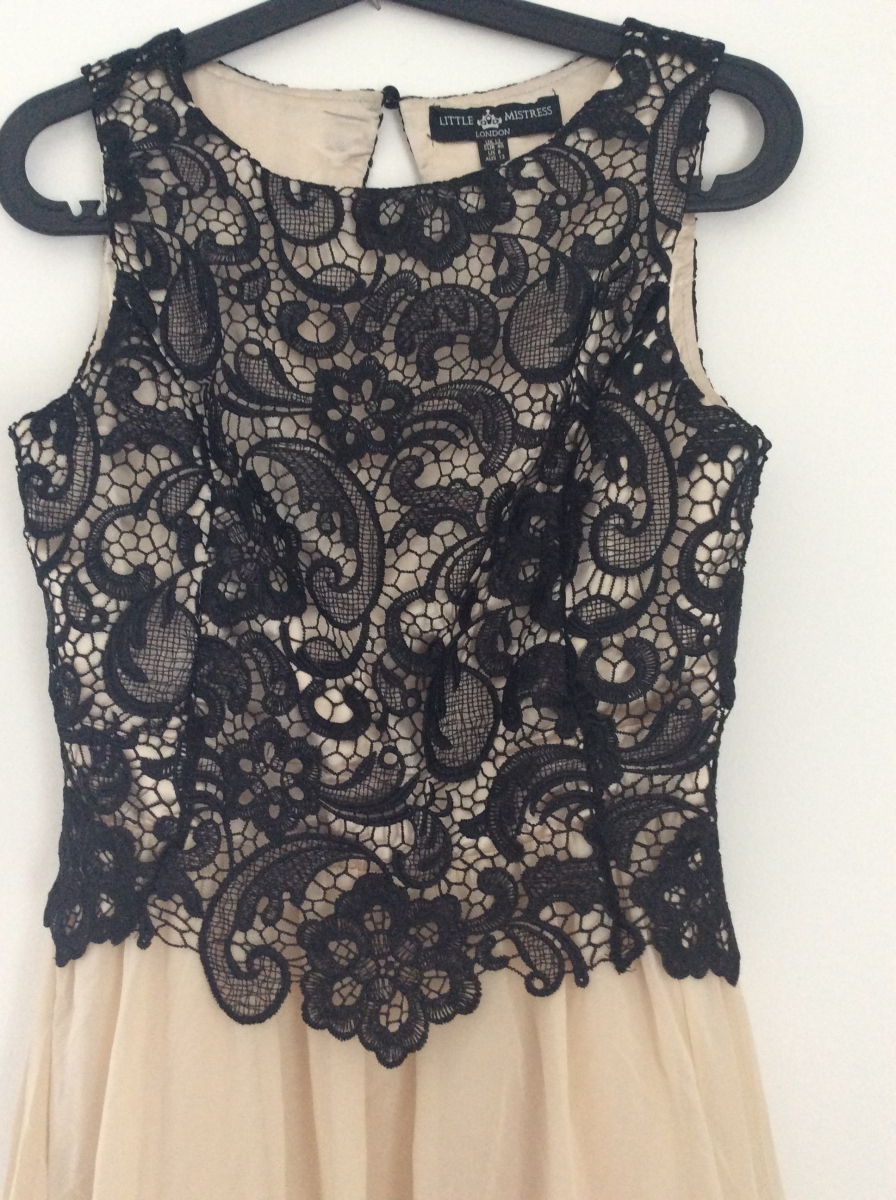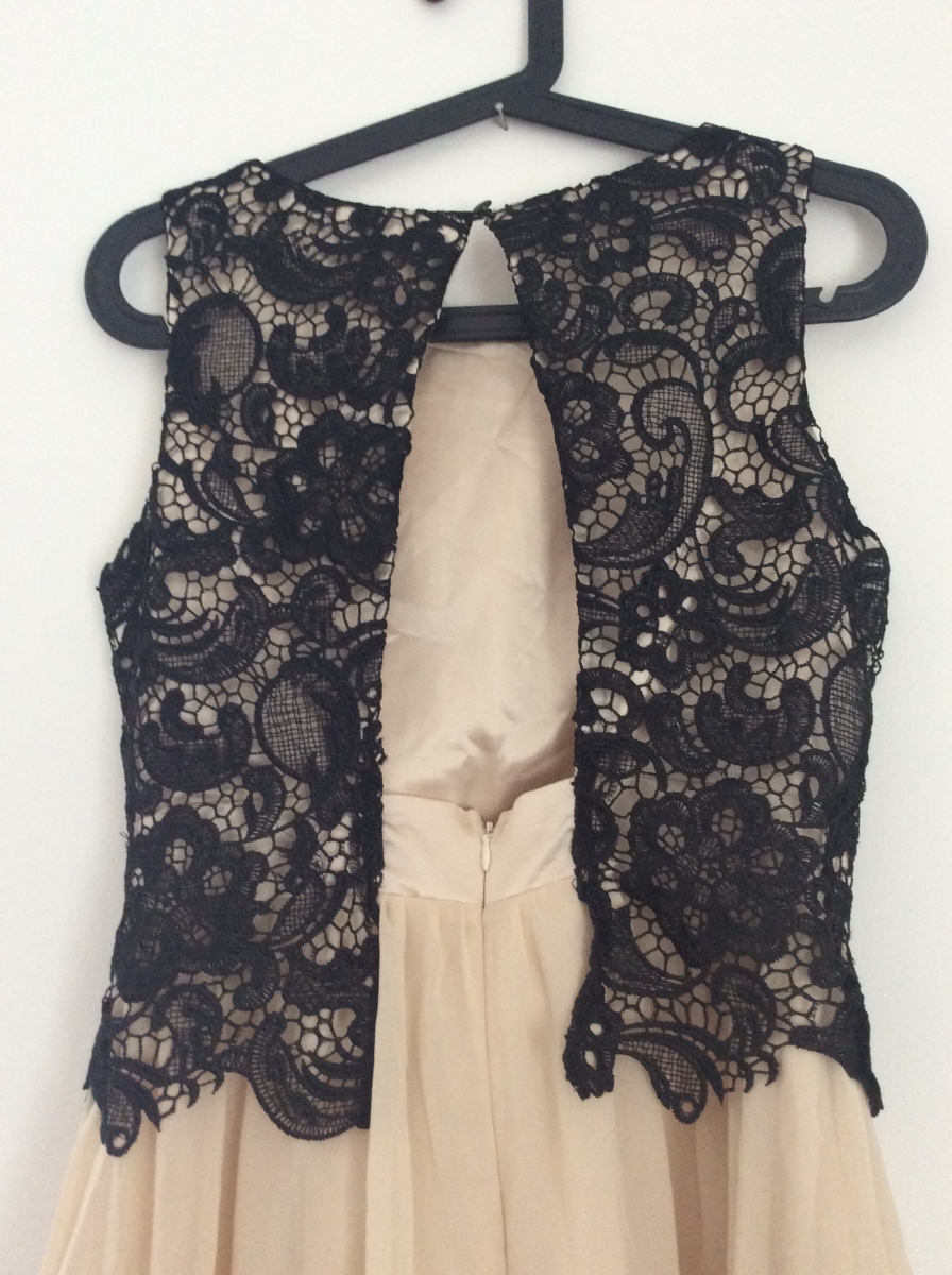 Robe de cérémonie avec dos ouvert. Très beau corset avec effet dentelle noire. Un jupon en tulle en dessous de la jupe donne du volume à la robe.