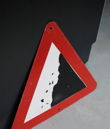 Panneau routier de Belgique "chute de pierre" en métal . Des années 50 .