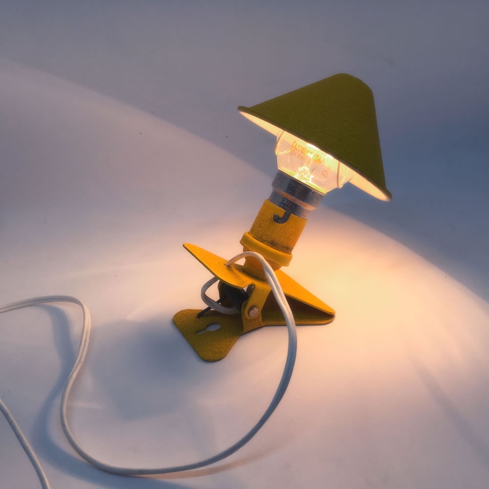 Cette baladeuse à pince jaune poudré (qui peut aussi se fixer sur une paroi) a veillé sur bien des lectures du Club des Cinq... et bien des endormissements ! Ampoule fournie, fil 2,4m.