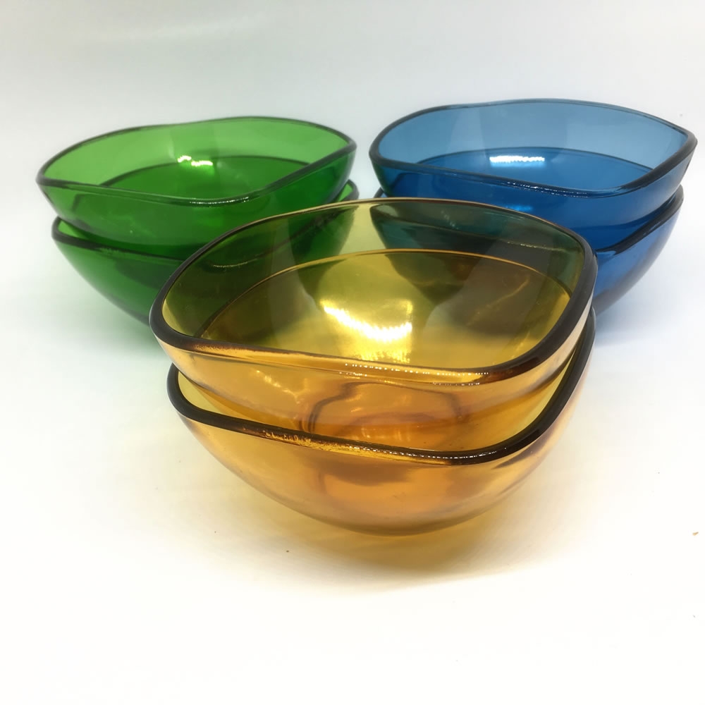 Bols Vereco années 60, 2 bleus 2 jaunes 2 verts. Bon état.