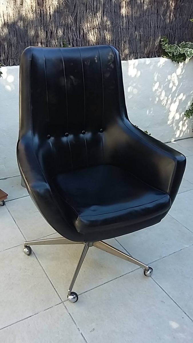 Pur fauteuil vintage années 50/60 SKAÏ noire