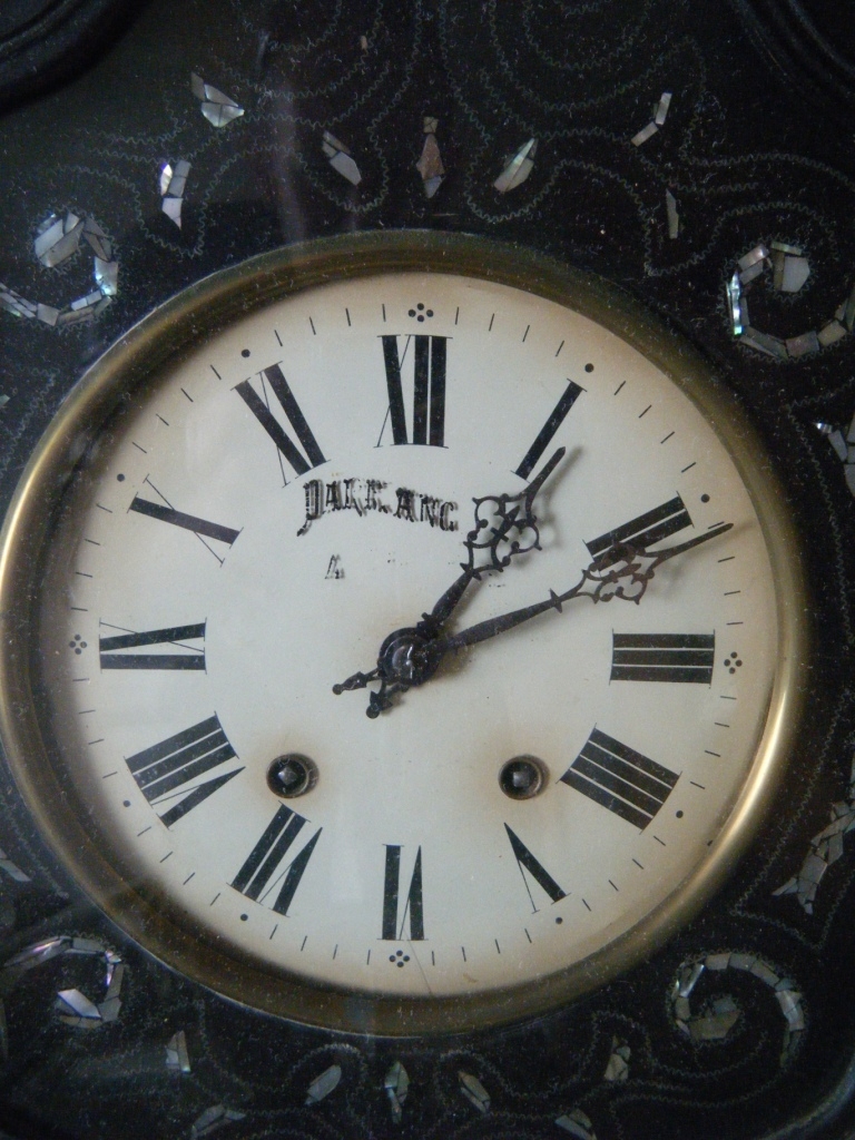 Horloge appelé oeil de boeuf nacré. Très ancienne. Bon état, elle fonctionne toujours.