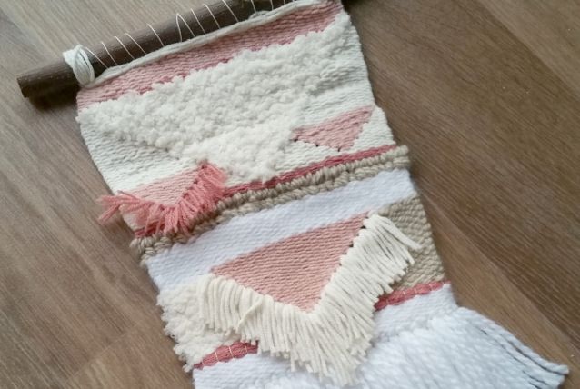 Tissage mural en laine fait main ! Des couleurs toutes douces pour un hiver cocooning ! Comptez deux jours pour la confection !