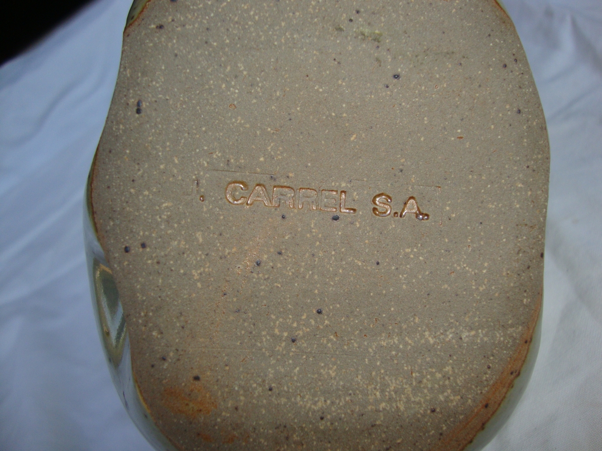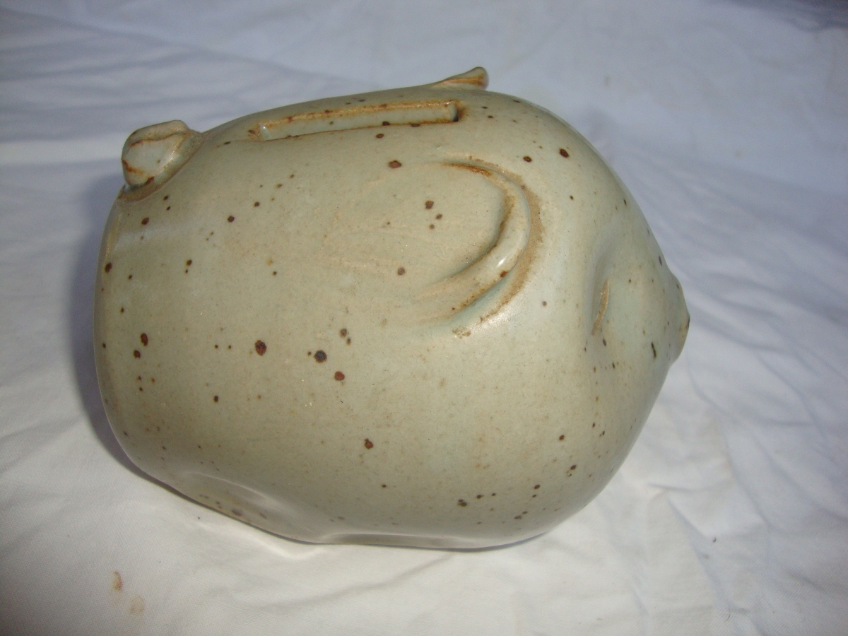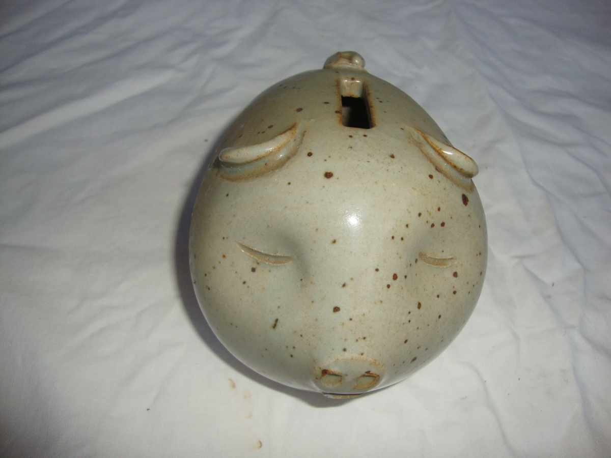 Petit cochon tirelire en céramique couleur beige estampillé Carrel s.a dessous en très bon état. Moins de 15 cm de long.