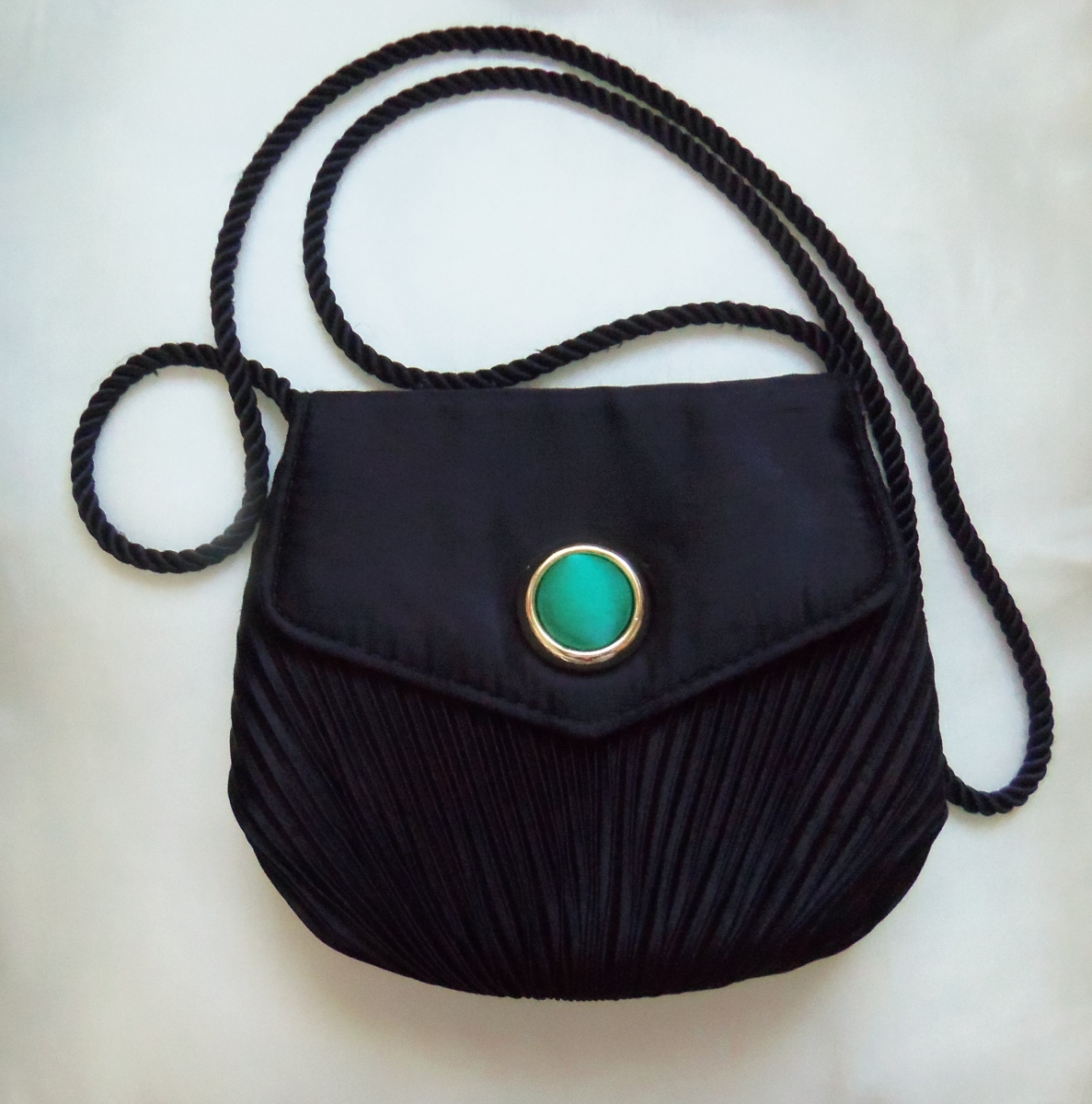 Pochette de soirée noire à porter en bandoulière ou à l'épaule, vintage