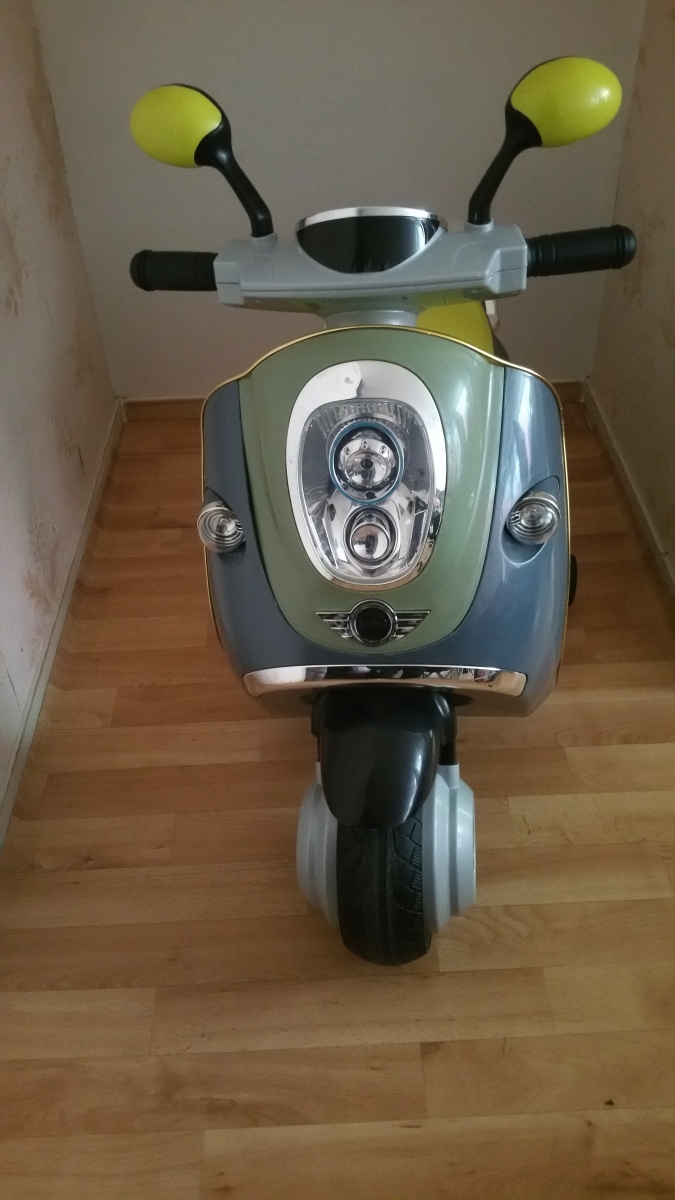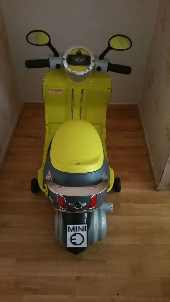 Scooter Mini Cooper en excellent état avec son carton d'origine idéal pour faire un super cadeau s'est un 6 volt et s'est de 3 ans à 8 ans conseillé sur le carton .