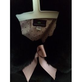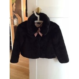 Joli manteau court fille en fausse fourrure toute douce, coupe évasée; port léger. Doublure impeccable. Peu porté. état impeccable. Col relevé d'un petit noeud rose. 7 ans/122 cm. Lavage à froid à la main.