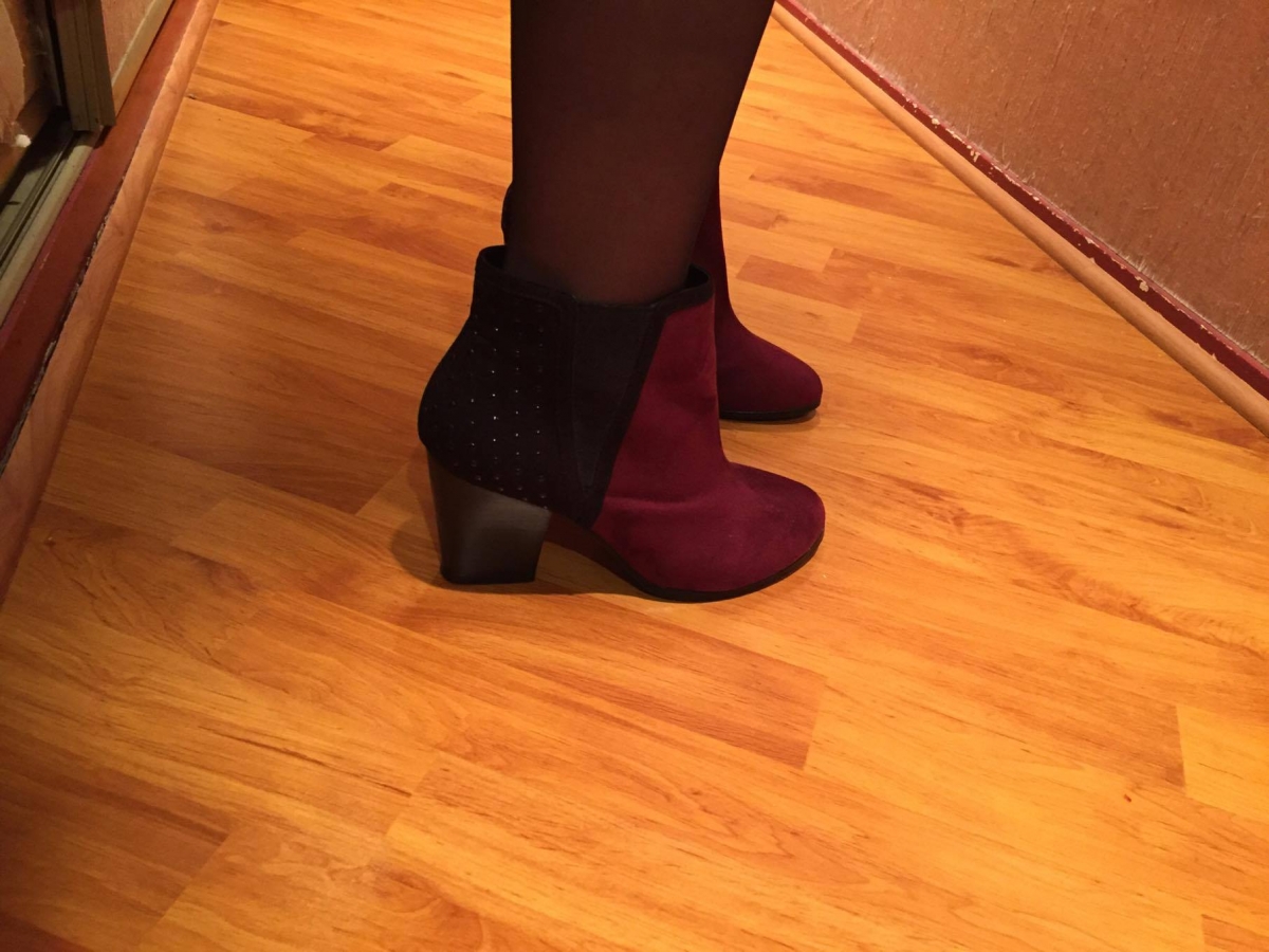 Ces bottines sont rouge bordeaux et noires avec à l'arrière des points en relief. Elles ont été portées qu'une fois.