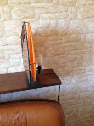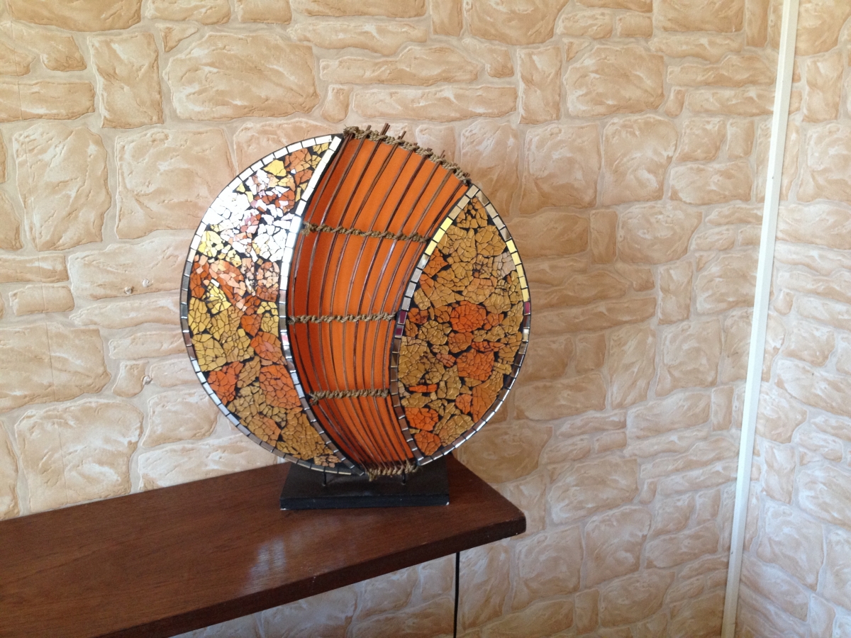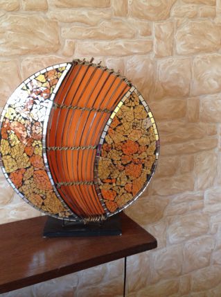 lampe orangée à poser, effet tamisé.