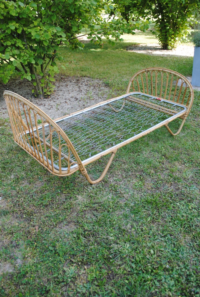 Lit en rotin vintage